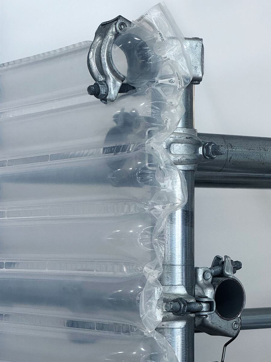 LAB、HUNTING WORLD和DESCENTE联合推出了这个新品牌,在商店设计中融入了自然保护和濒危物种这一品牌寓意。该商店的设计灵感来自于在恶劣环境中保护行李的袋子,使用了气垫这一关键材料进行附着。由于气垫与脚手架管的直径几乎相同,因此使用脚手架管夹夹紧气垫进行附着。小象的品牌标志被应用在凹凸不平的表面上,寓意保护自然和濒危物种。