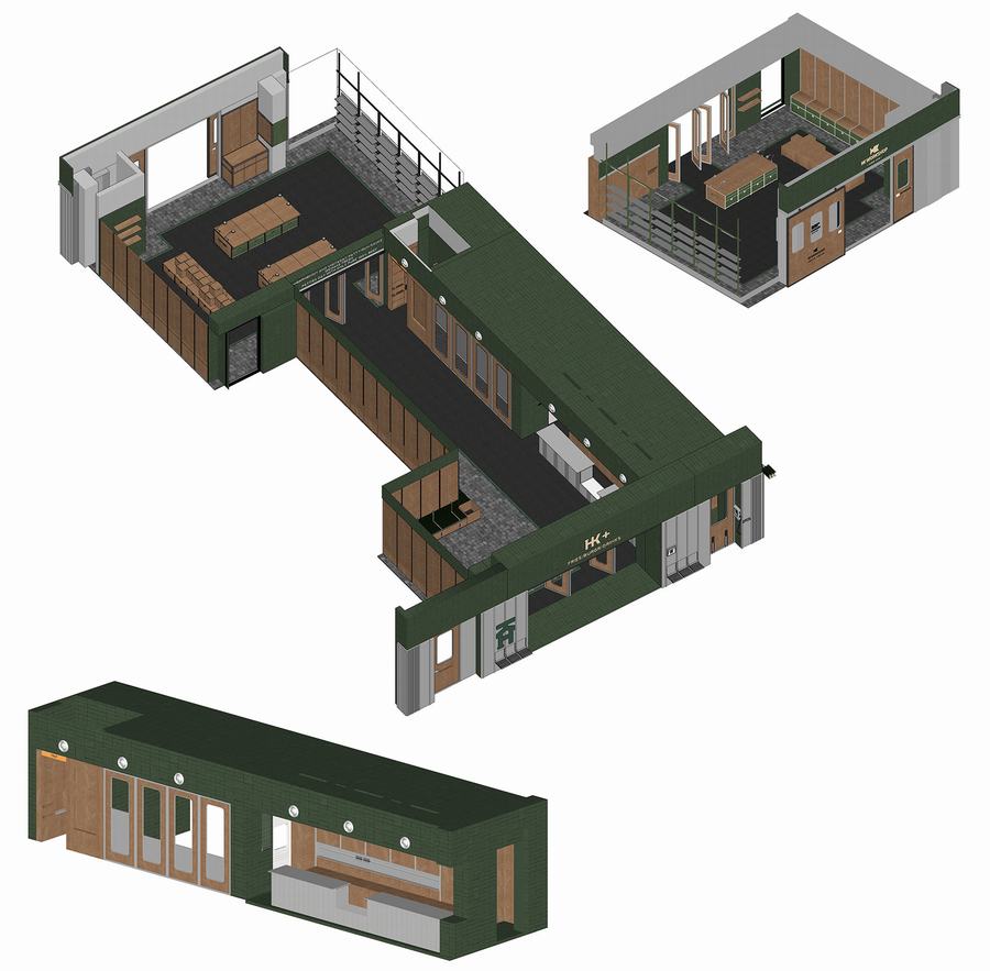 除了注重设计细节之外,HK+ BURGER还采用了预制结构和可持续产品化的理念,利用铝型材和暖色桦木板打造简洁明快的造型风格。不同的模块组合可以满足不同场景的功能需求,如零售、工艺品、表演和展览等活动。这样的设计不仅提高了空间的利用效率,也使得店铺更具多功能性和灵活性。