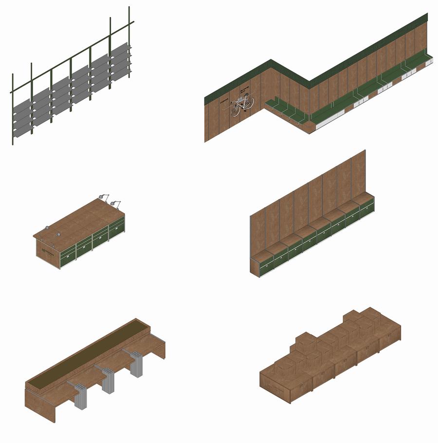 店铺入口处采用折叠门设计,使得入口完全开放,并使用马蹄形和粘性石材地板,将店铺与公共区域之间的界限模糊起来。这样的设计不仅方便顾客进出,还为街头文化和户外文化的爱好者提供了一个聚集交流的场所。商店入口处还设置了红绿灯装置,展示业态内容,并提供公共饮水处,方便骑行者使用。