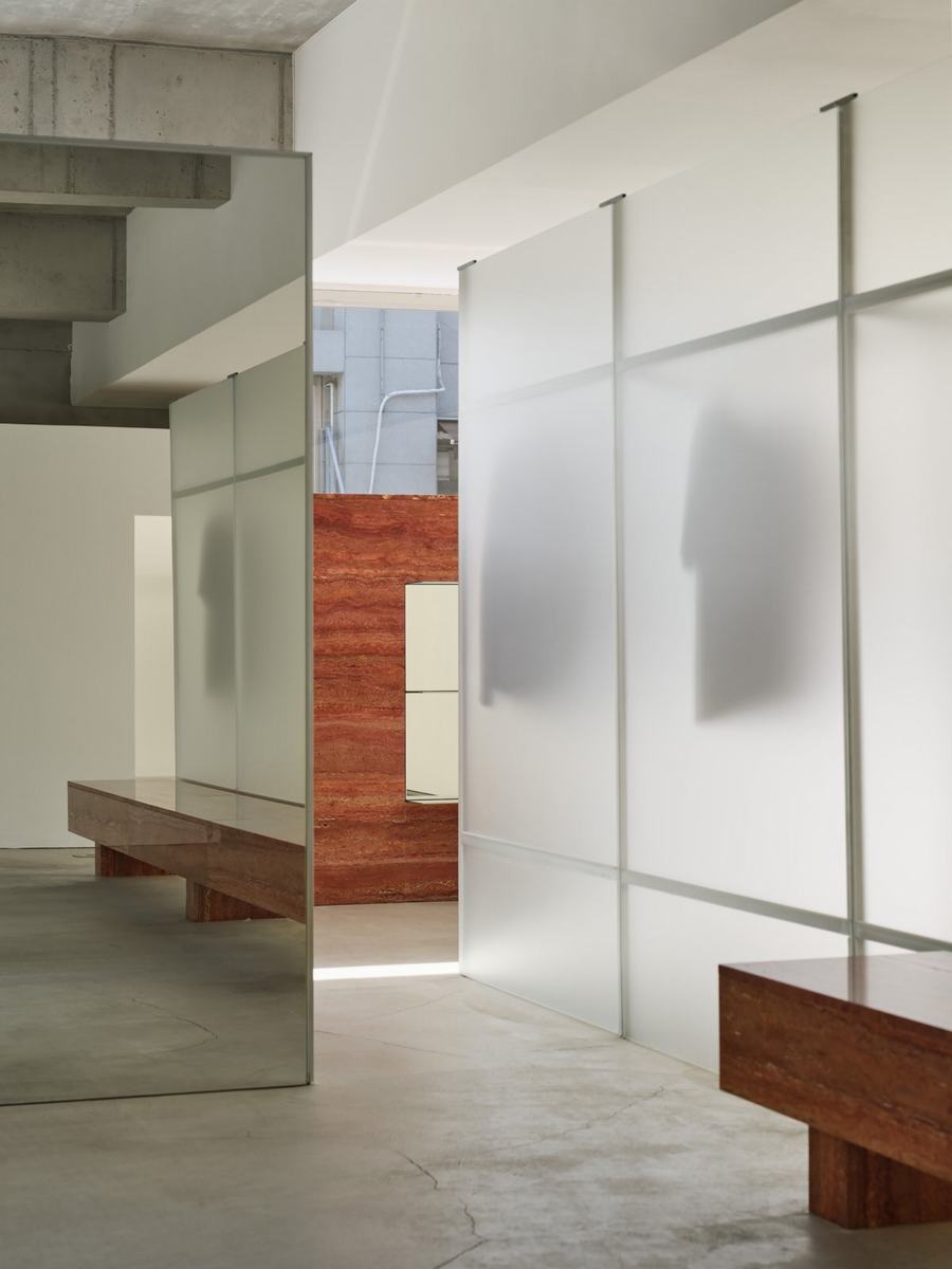 室内是一个朝南的浅空间,我们将其命名为“长慢距离”,旨在让客户和他们的客户一起享受产品的购物体验。当你到达入口时,有两堵墙挡住你的路——当你进入时,你会遇到第一面墙,它是柜台的区域,另一面墙是一个小展示柜,挡住了深深的西方光线。这些墙壁作为一个指导方针,引导顾客自然地进入室内。