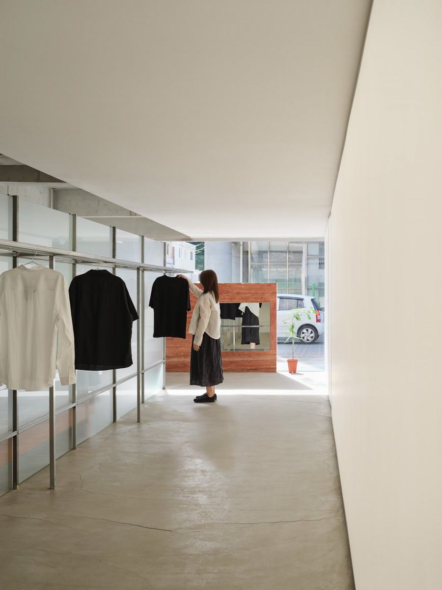 作为一家服装店,轮廓产品是非常重要的。我们在设计中突出了轮廓产品,并通过流动线条将整个店面划分为前后两个空间,创造了一个长而慢的购物体验。同时,在室内设置了一个半透明的陈列柜,让人们能够从外部巧妙地看到衣服。这些设计都是为了让客户更加愉悦和舒适地购物。