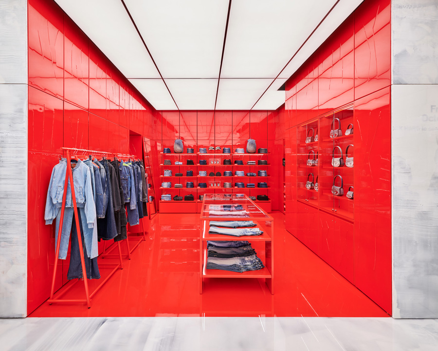 此外,DIESEL还推出了一系列特别的牛仔服饰胶囊系列,其中包括牛仔裤、高跟鞋和独特设计的包款,这些产品系列以及零售空间本身都充分彰显了DIESEL对时尚和设计的不懈追求。