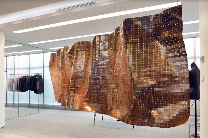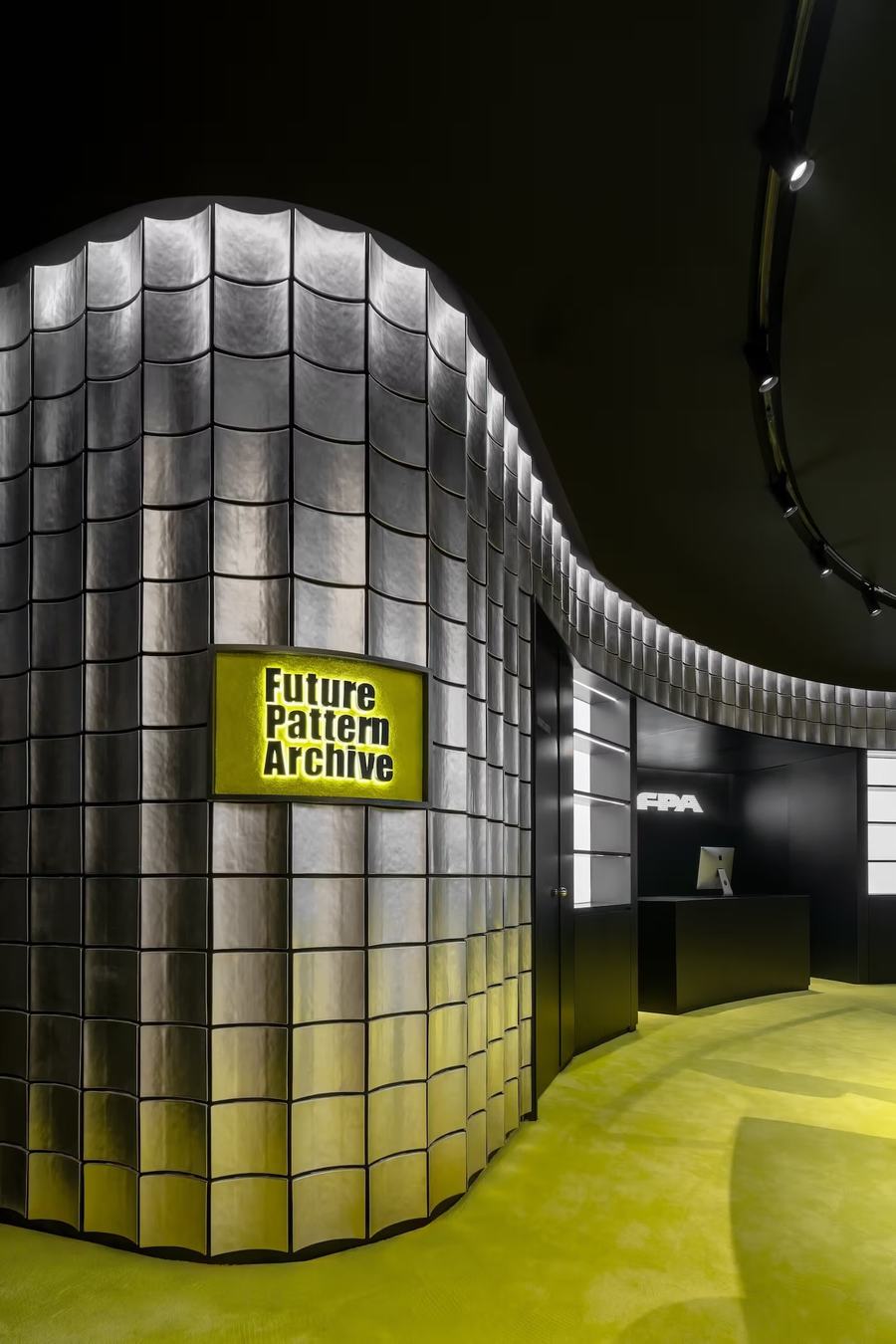 不仅如此,银色砖块的手工肌理与电镀银的光泽相结合,让整个空间变得独一无二。它们宛如远古战士披上的铠甲,让空间变身为一位守护者,保护着这个特别的店铺。这种设计元素完美地展现了FPA品牌一贯的调性,将品牌的独特魅力展现得淋漓尽致。