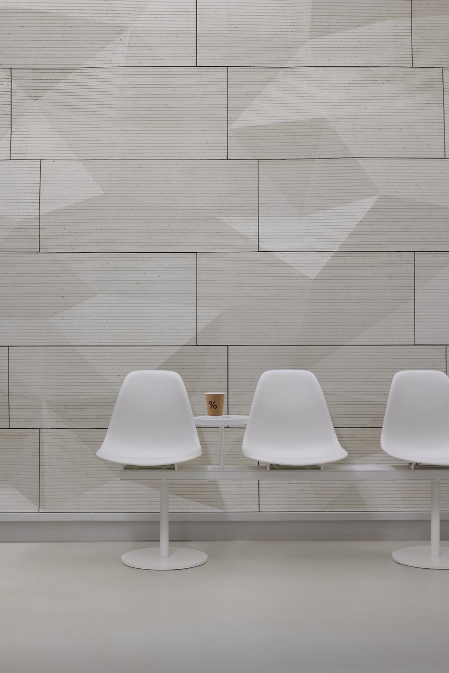 调色板以白色、黑色和棕色为主。黑色装饰着商店的正面,与明亮的白色形成鲜明对比,并与车站的现代设计语言相呼应。纯净的“冰川”白色作为背景色,与生物形态的可丽耐台面完美结合。极简主义的白色椅子、几何站立酒吧和酒吧凳为顾客提供了放松和社交互动的宜人环境。同时,巧妙地放置在商店周围的微妙棕色装饰包括装饰性咖啡袋、浓缩咖啡机和咖啡豆,为店内营造出放松的氛围,并与自然风格相呼应。