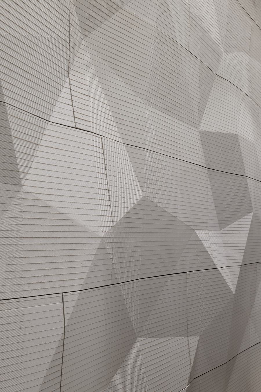 在多伦多联合车站的阿拉比卡旗舰店中,Tacklebox建筑事务所采用了加拿大冰川形成的设计理念。这家咖啡馆的设计灵感源自冰层,无论是冰川冰、岩层还是基岩的分层,都得到了体现。整个空间由172个切面块组成,每一块都经过石膏雕刻和堆叠,共计3,452层。白色的整体表面上装饰着24个粉末涂层钢龛,用于展示商品。品牌创始人Kenneth Shoji希望通过咖啡让顾客看到世界,因此咖啡袋和色彩协调的地球仪被放置在壁龛中,凸显品牌理念。