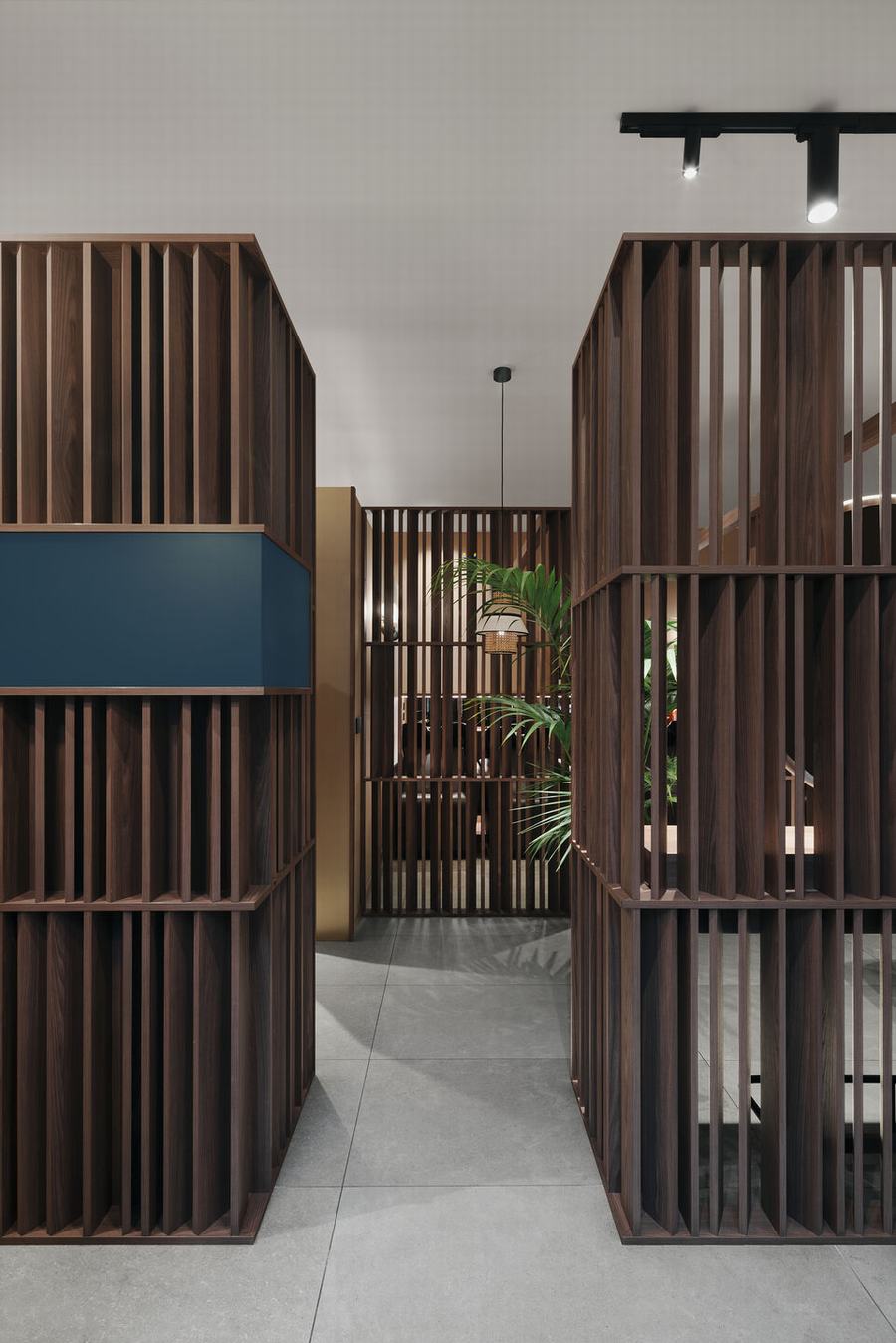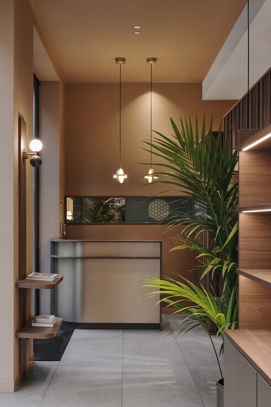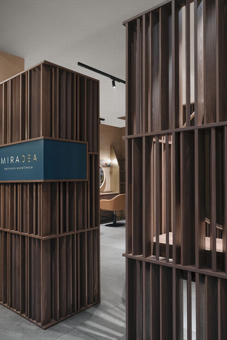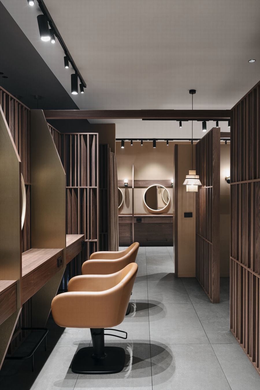 一进入米拉迪亚美容院,温馨的色调和受欢迎的材料立刻映入眼帘。古铜色的金属桌子作为入口的标志,辛烷色的条带沿着墙壁延伸,连接着不同的空间,为整个环境增添了一丝神秘感。木隔断将空间分隔成私密的区域,确保每位客人都能拥有亲密和个人的旅程,享受到最贴心的照顾。