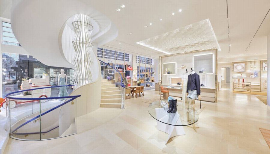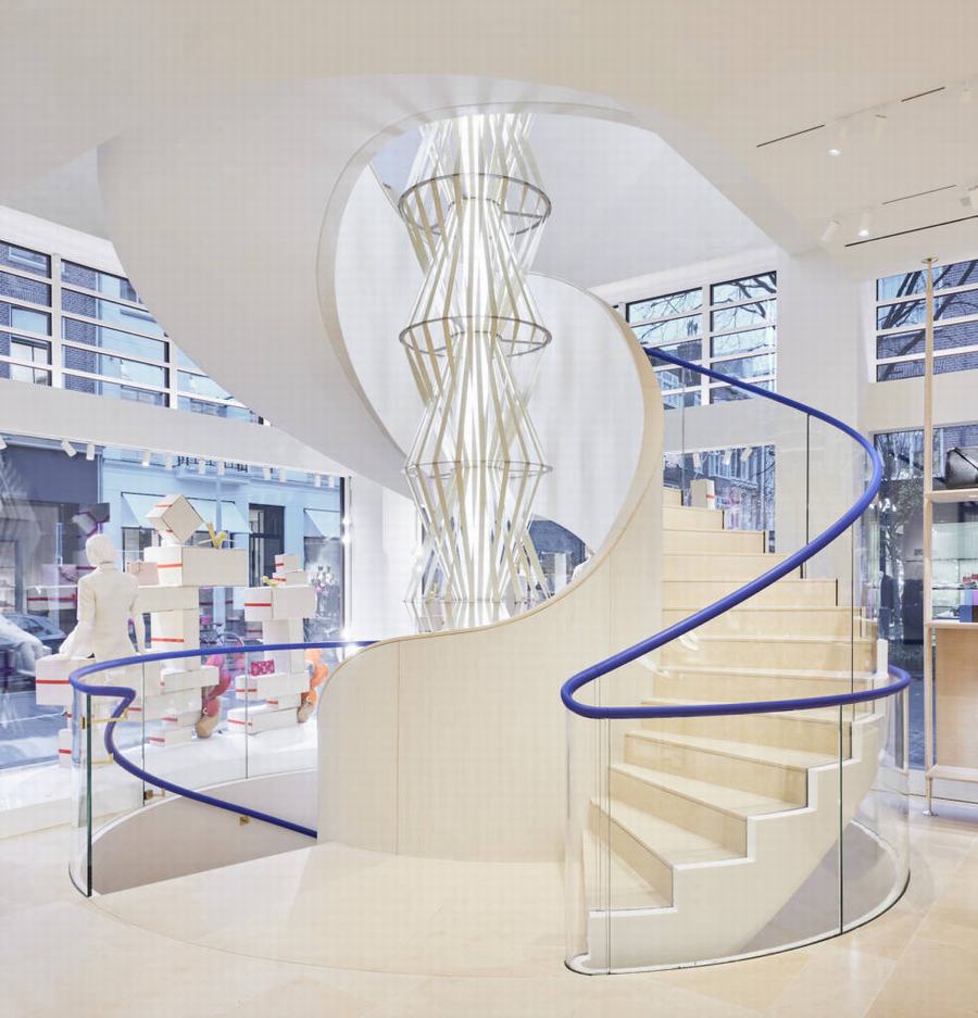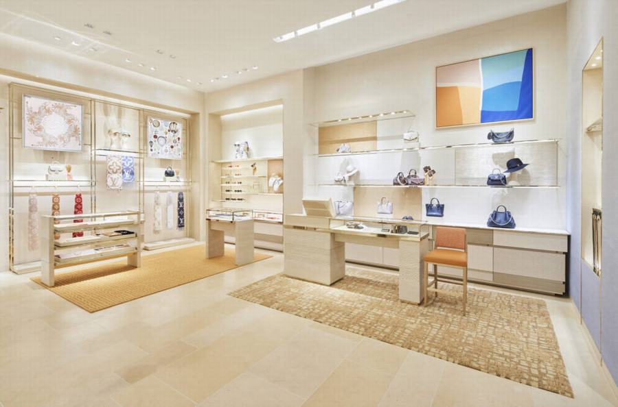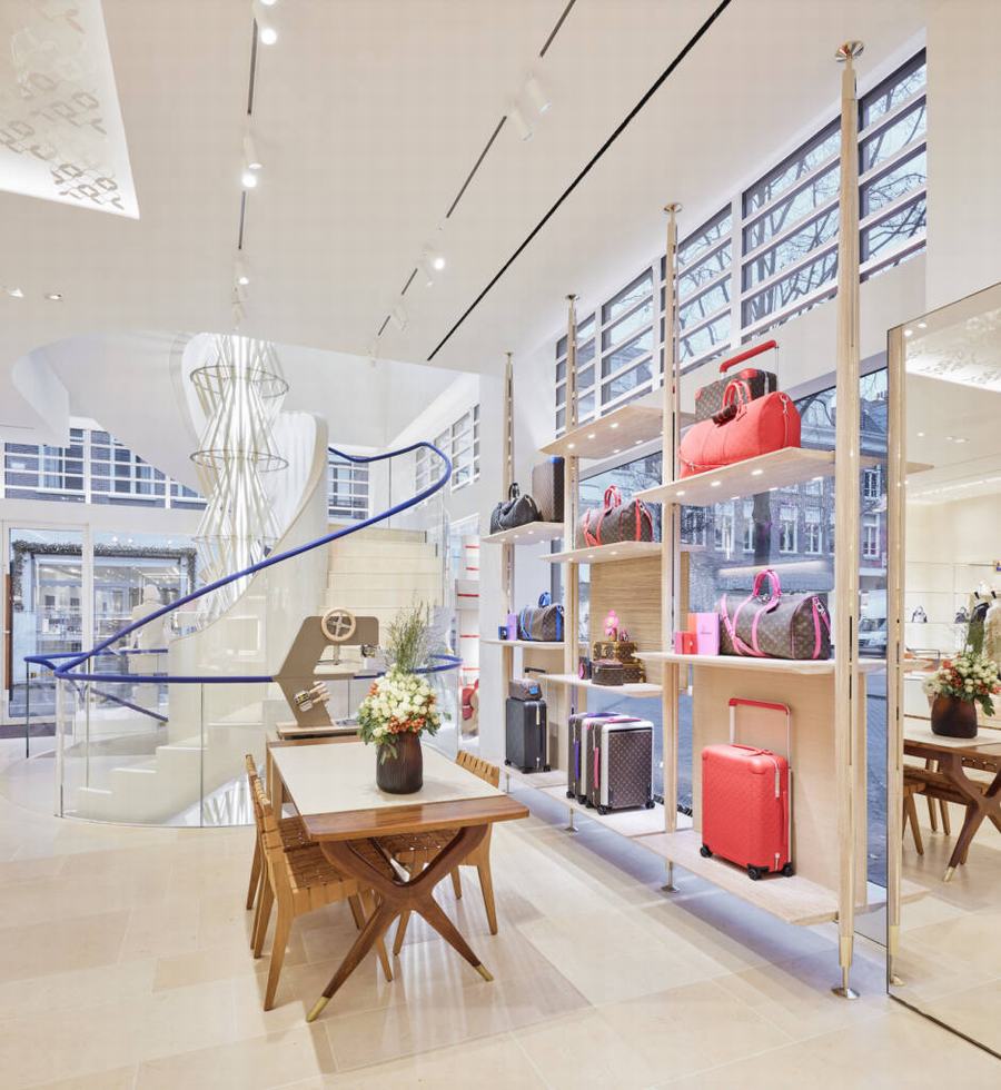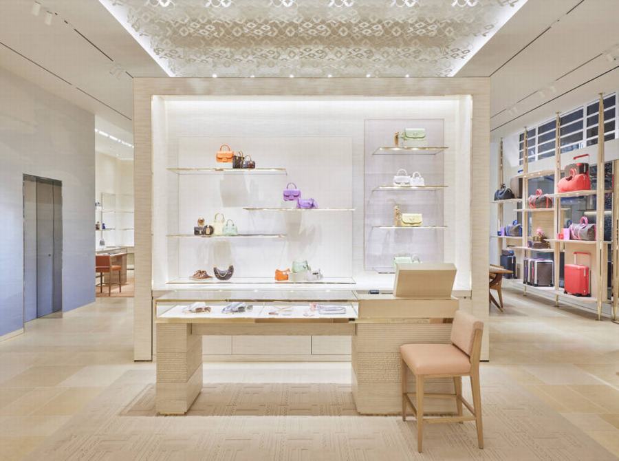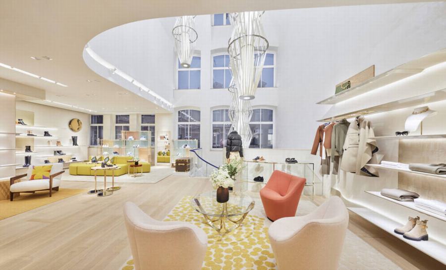 这家商店以其独特的室内设计和创新的产品系列吸引着顾客的目光。商店分为三层楼,展示了品牌的女装、男装、皮具、鞋子、香水和配饰。同时,钟表和珠宝的专用空间也补充了新的报价,让顾客能够欣赏到品牌历史悠久的行李箱和旅行配件的广泛选择。