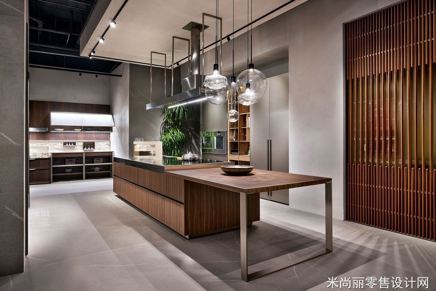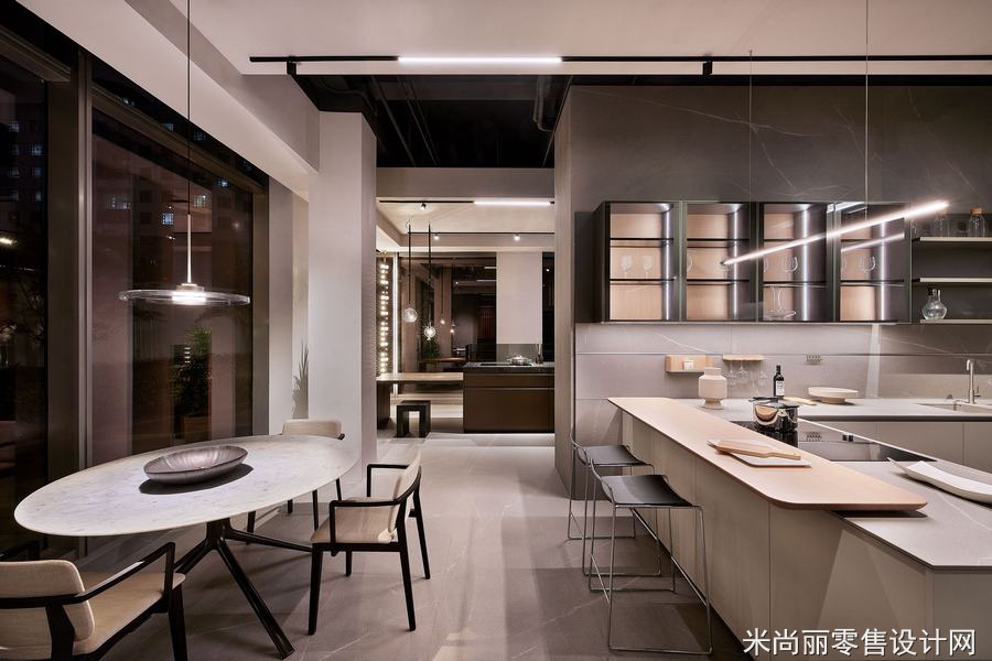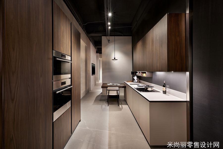 商店的主要任务是展示不同风格和功能的厨房模型,并提供一个舒适而现代的环境,以吸引潜在客户。在考虑到总部的指导方针的同时,我们还非常注重融入当地的中国趋势和品味。因此,在设计过程中,我们采用了工业色调和最小设计的理念。