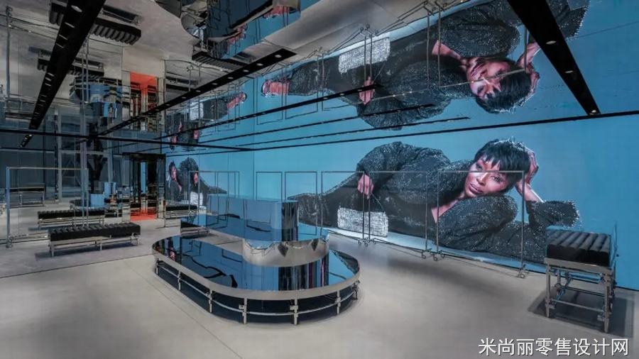 这个永久性门店的设计灵感来自品牌内部团队的巧思和创意。店铺的概念扩展了亚历山大·王品牌著名的设计规范和时尚美学,通过镜面抛光的不锈钢表面和LED墙为背景,向顾客展示了Alexander Wang策划的内容。这个设计旨在为顾客提供一个独特而现代的购物环境,让他们在其中感受到品牌的独特魅力。