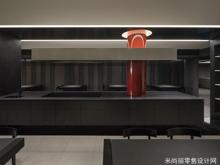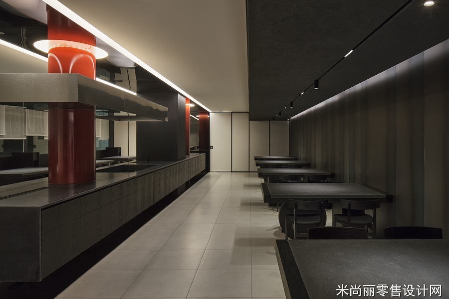SUTIMOON的空间设计也别具一格。墙壁粗糙而黑暗,与木炭发出的柔和光线相互映衬,营造出一个类似夜空中月亮光环的视觉效果。这种独特的设计不仅让人感受到木炭烧烤技术的原始品味,也与现代感性相契合。