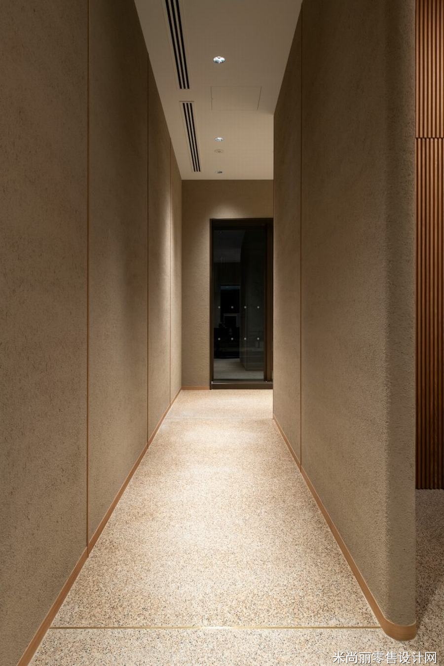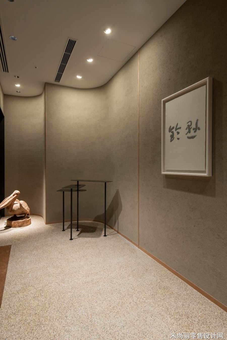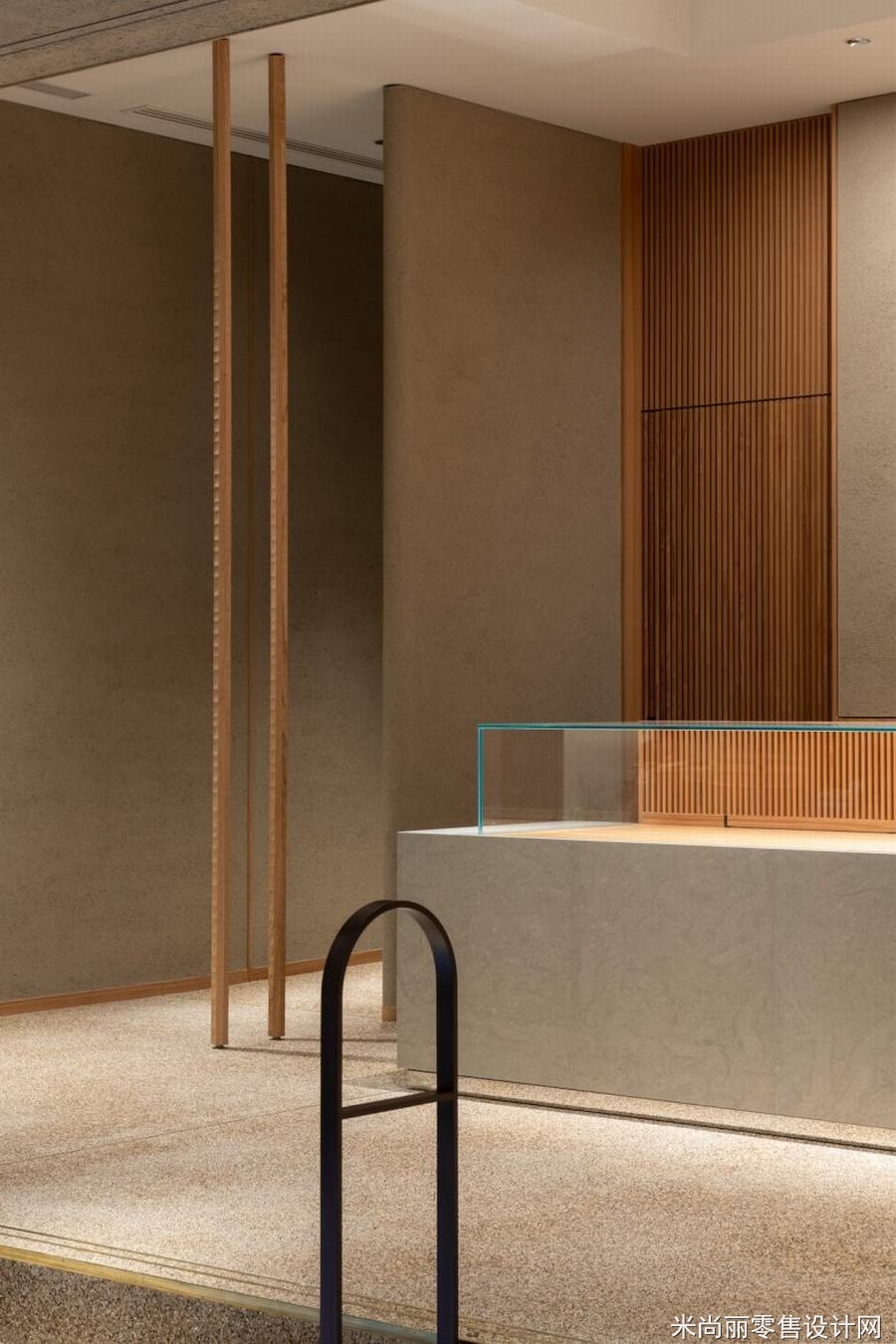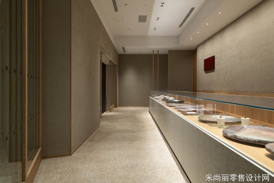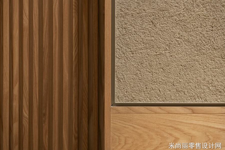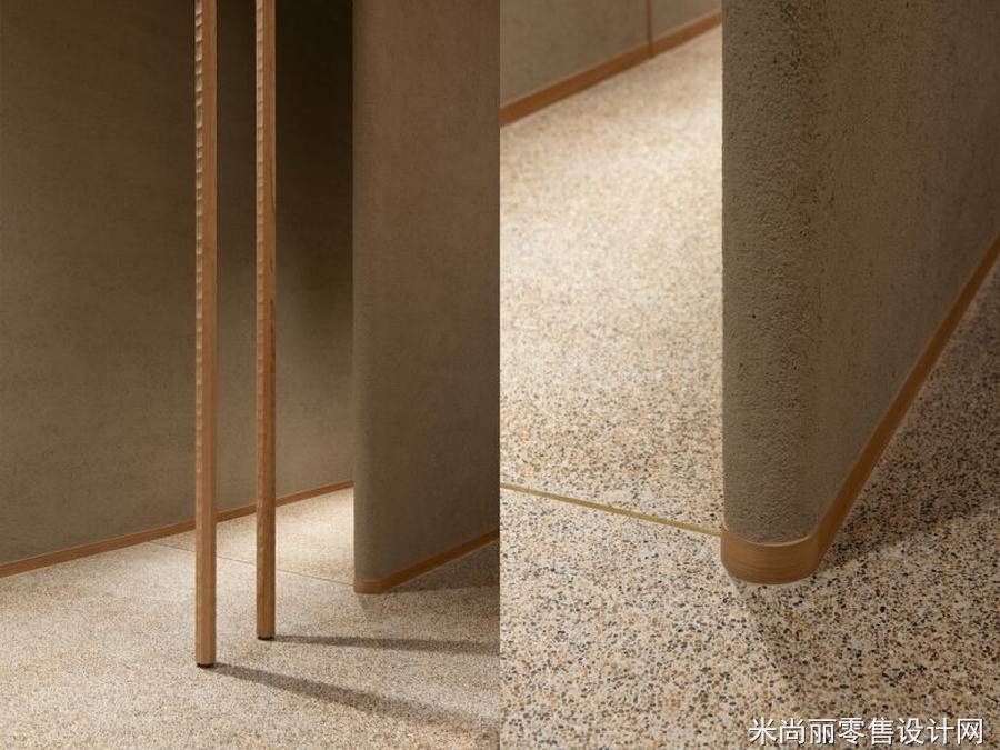 在整体材料的选择上,设计师们注重营造一个中性质感的空间。他们运用了水洗饰面、灰泥和稻草等材料,结合日本灰木的门槛、踢脚板和固定装置,创造出一个有质感的中性空间。展示柜采用白蜡木制作,基座则使用耐用的灰色石灰石完成,旨在平衡展示物品与整体空间的协调性。