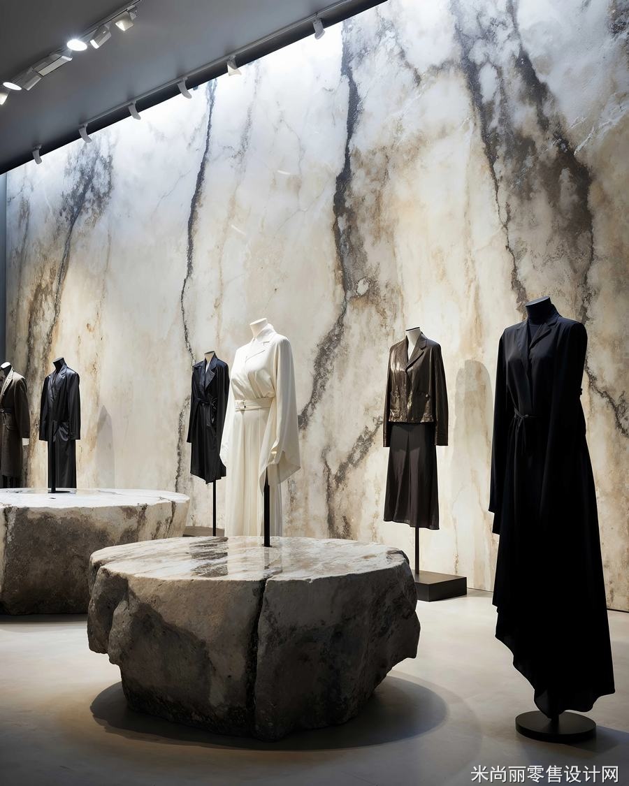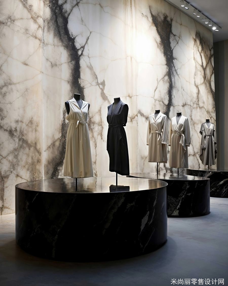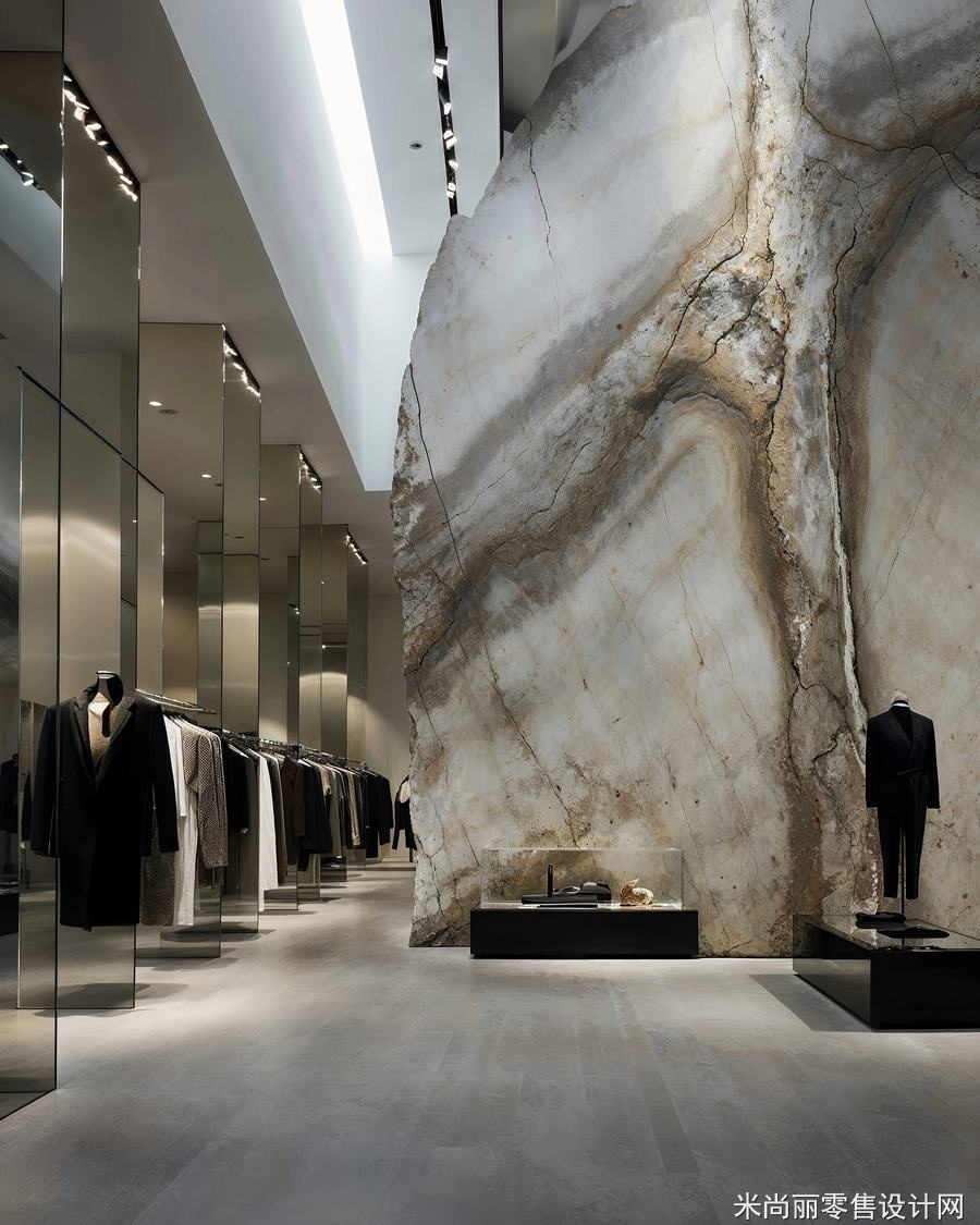 阿玛尼商店的设计宣言体现在服装的展示上。在这个空间里,阿玛尼的服装变得栩栩如生,仿佛穿越时空,让顾客沉浸在经典之美和永恒的工艺中。每一件服装都精心搭配,呈现出阿玛尼品牌独特的风格和品质。