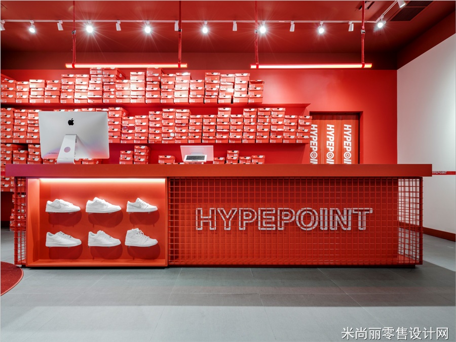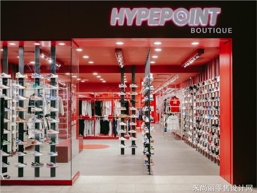 除了精美的室内设计,HypePoint门店还销售耐克、Supreme、锐步、Champion、AntiSocialSocialClub和Sp5der等各种领先品牌的运动鞋和服装,让年轻人展示自己的时尚品味。商店的设计规范既诱人又充满活力,为志同道合的年轻人提供了一个聚会场所。