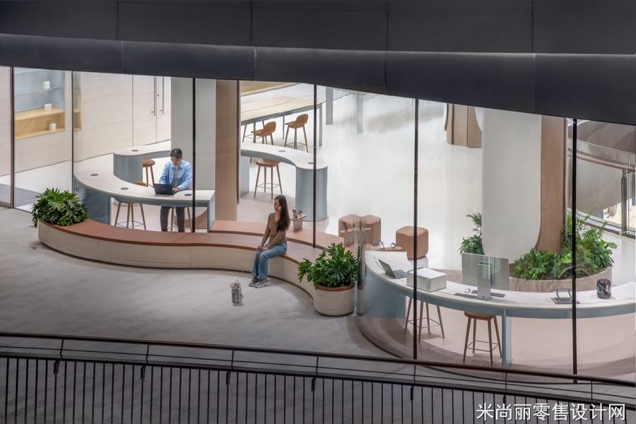旗舰店的设计注重可持续性和环境友好设计,通过高性能和回收材料的使用,减少对环境的影响。店内的先进通风系统和实时监控系统确保了高室内空气质量,同时,螺旋形的“和谐之树”不仅是一种美学表达,也象征着内外交流的桥梁,促进了自然光的最大化利用和空间的视觉连通性。