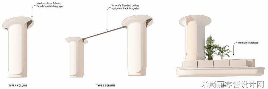 UNStudio和华为合作的主要目标是创造一个用户驱动的客户体验设计,通过人、自然和技术的结合,营造一个既现代又舒适的购物环境。上海华为太古里旗舰店的设计灵感来源于自然以及华为“和谐”操作系统的理念,力图打造一个无缝整合自然元素与先进科技的空间。