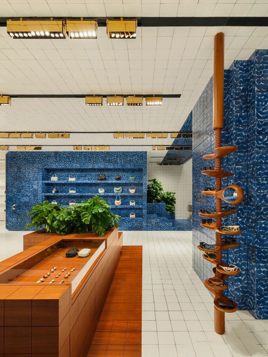 旗舰店的设计灵感源自于意大利威尼托地区,这不仅是Bottega Veneta的发源地,也是其设计灵魂的所在。设计师巧妙地将自然景观及历史人文元素融入店铺设计中,通过现代设计手法诠释了独特品牌美学,旨在打造一个既舒适又充满艺术氛围的购物空间。