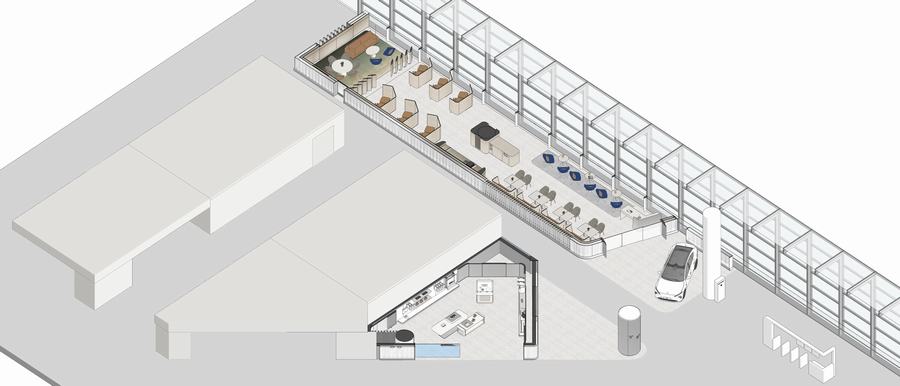 除了零售空间,蔚来汽车在这个机场还打造了一个休息室和私人房间等功能区域,为客人创造了一个比典型的飞行前休息室更多的空间。在这些功能区域中,设计师使用了大量的高质量材料和精心设计的细节,让客人可以享受到更加舒适和方便的服务。例如,在休息室中,客人可以自助酒吧,同时还可以在安静的休息室和半封闭的私人房间中放松身心。