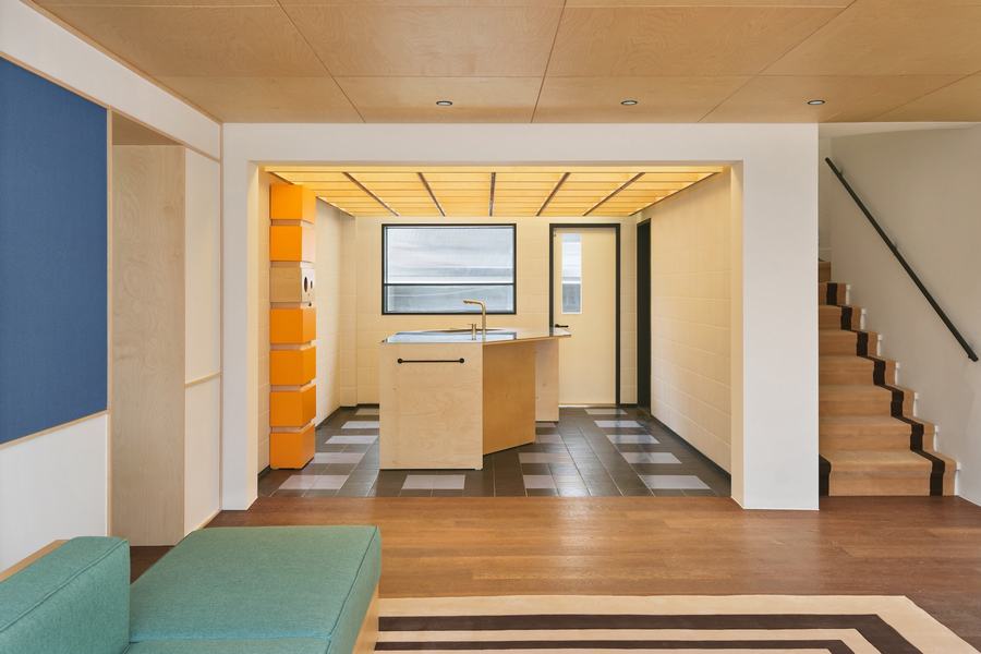 AnotherDStudio的设计师们以一种极具创意的方式重新诠释了这两座建筑。前医院部分被设计成一个光滑、有意模糊的空间,旨在提供一个“像空白画布一样”的环境,鼓励人们在其中探索无限可能。而那座老房子则被赋予了新的生命,成为了Workerbee的吉祥物克尔比的家。设计师们试图从克尔比的视角出发,想象这个带条纹翅膀的角色会如何装饰自己的空间。结果是,图案瓷砖和深色木地板成为了室内设计的亮点,营造出温馨而吸引人的氛围。