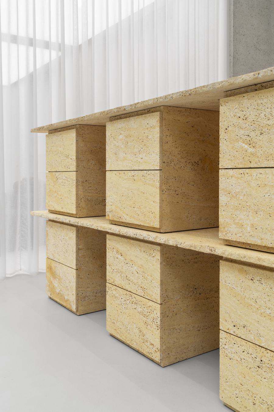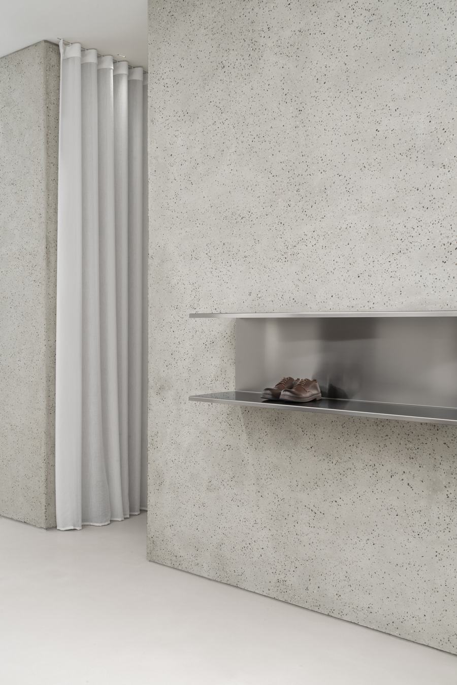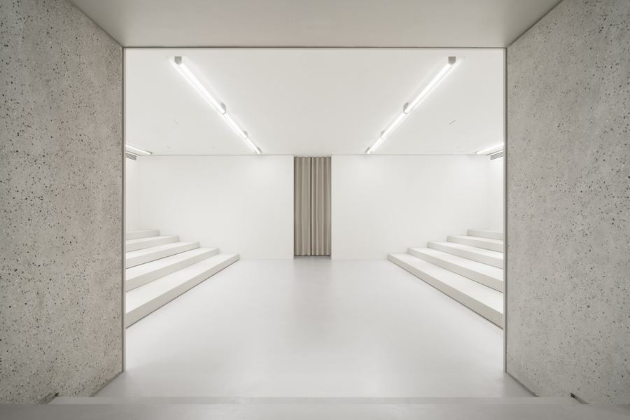 窗户展示着商店内部的精致设计,半透明的窗帘可以灵活拉开闭合,随意划分空间,让顾客感受到光影带来的变幻之美。在商店的后方,还设有一个画廊区域,展示着各种合作项目和原位艺术作品,为顾客带来更多的惊喜和享受。