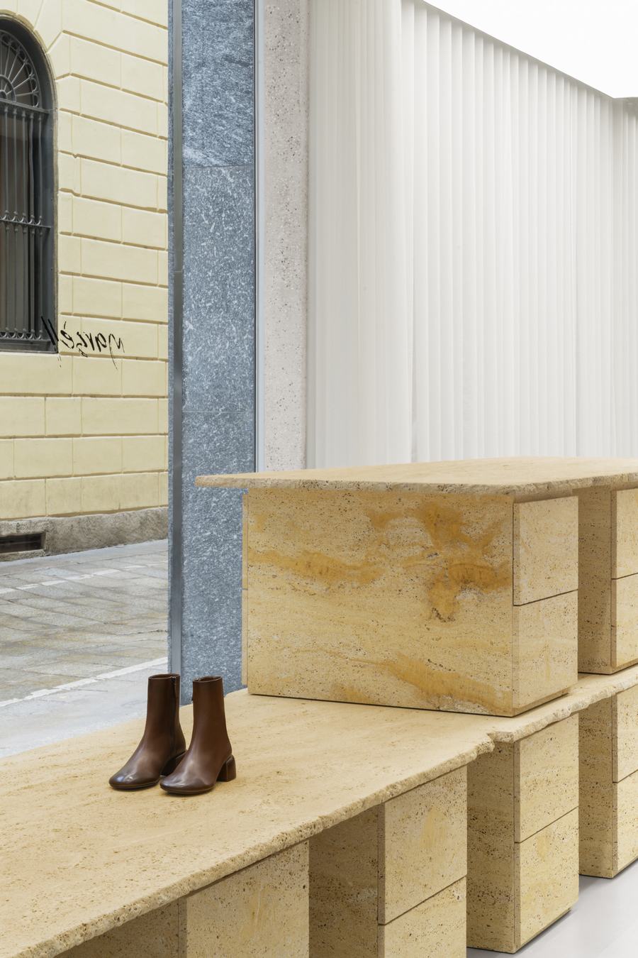 在米兰时尚区Quadrilatero Della Moda的繁华街道Della Spiga大街上,Marsèll的全新旗舰店如一颗璀璨明珠闪耀着光芒。这家意大利鞋类和配饰品牌的店铺地处一栋建筑的地面和地下室,散发着独特的魅力。