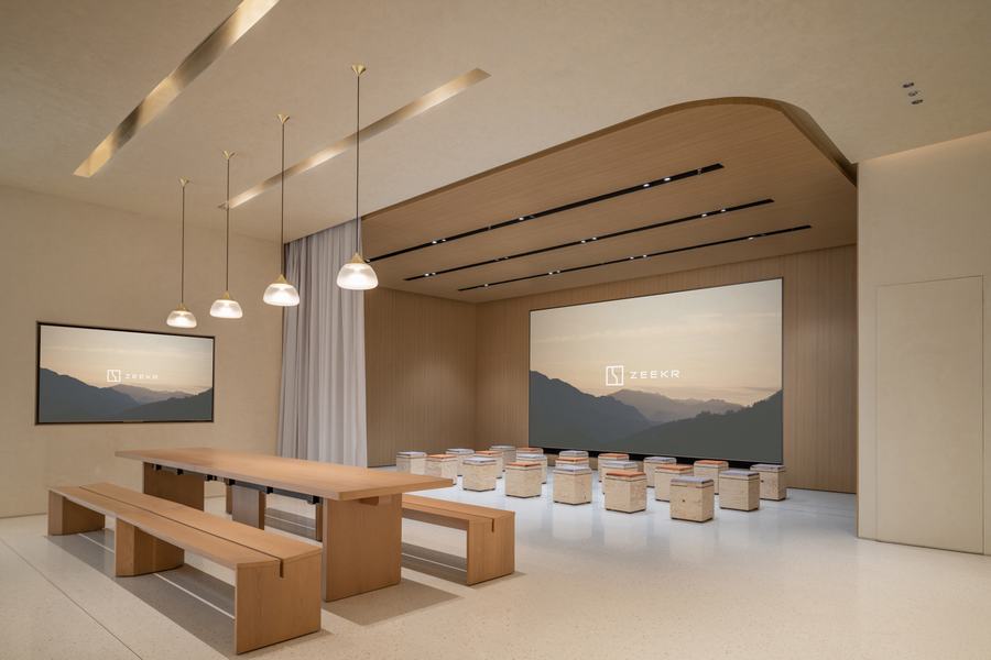 位于重庆的ZEEKR中心,由HATCH设计团队精心打造,是一个集技术创新与自然美景于一体的未来展厅。占地1200平方米的展厅不仅是ZEEKR品牌的最大中心,更是一个展示如何通过设计优化用户体验的典范。