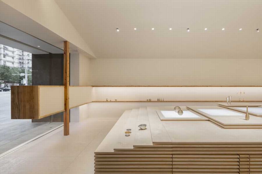 在这个“同一屋檐下”的概念下,我们努力打造出一个与生活用具工厂相呼应的空间,让黄铜与锡产生共鸣,传达出对生活的热爱和尊重。中央陈设与当地设计师Pill Wu Design的合作,使得这个空间不仅仅是一个商店,更是与台湾客人建立联系的桥梁。