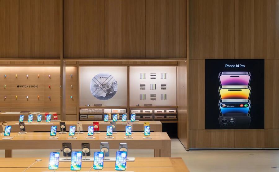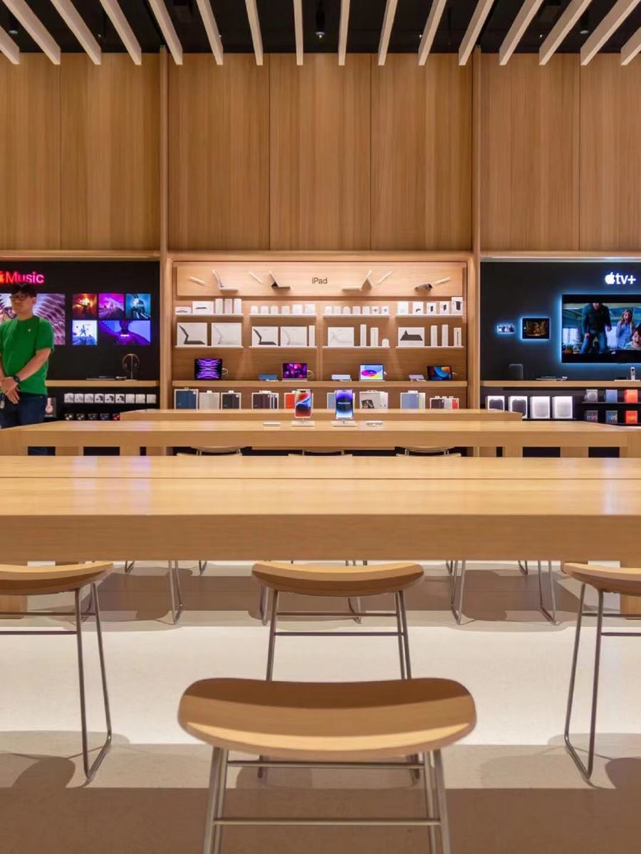 在细节处理上,新的Apple Store更是达到了极致。从店内的布局到每一个展示品的摆放,都充满了品牌对细节的极致追求。每一个展示台都经过精心设计,不仅展示了Apple的最新产品,更通过巧妙的设计语言,将产品的特点和优势淋漓尽致地展现出来。同时,店内还设置了多处互动体验区,让用户能够亲身感受产品的魅力,进一步提升购物体验。