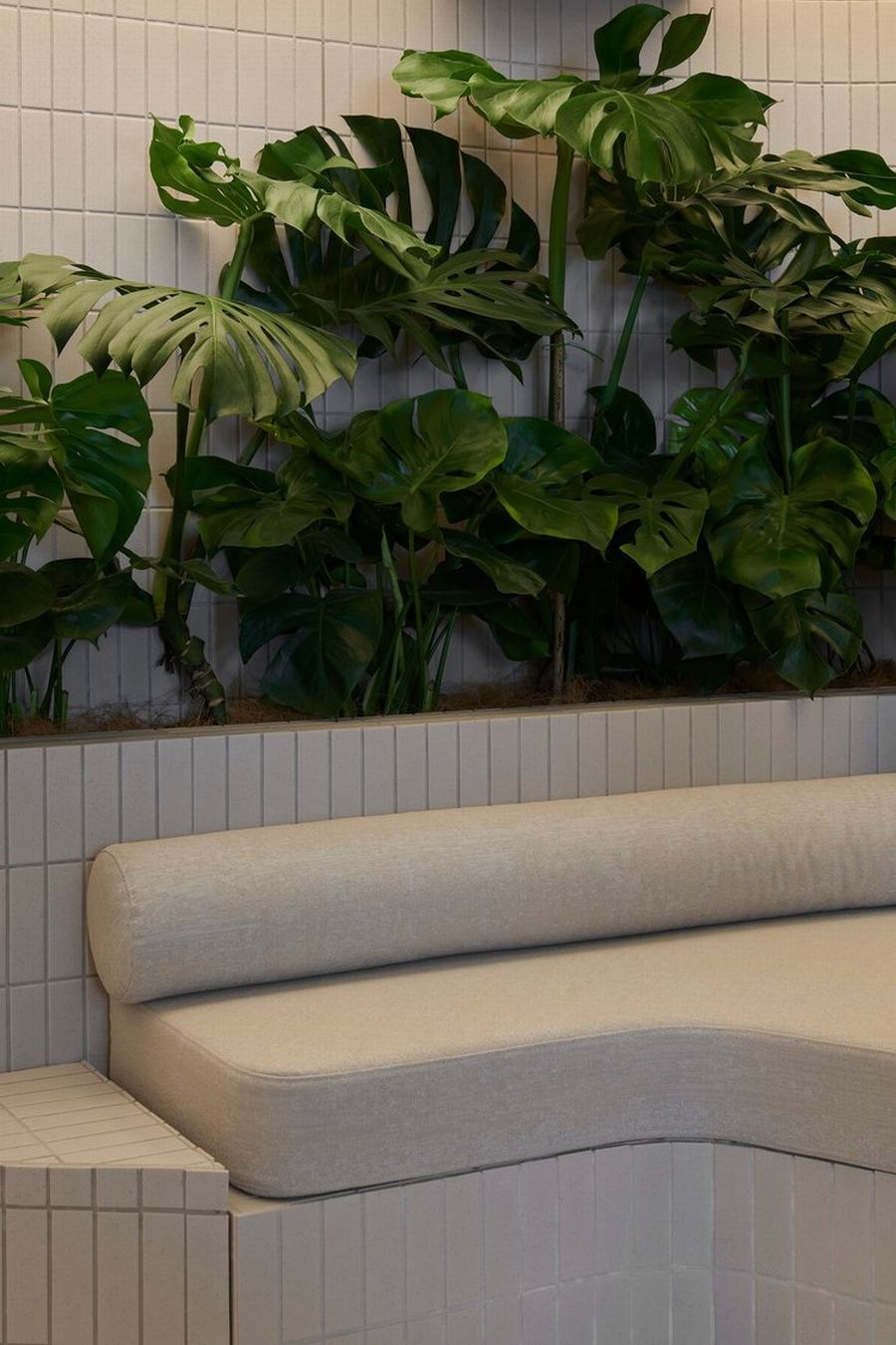 在整个商店里,细长的瓷砖、宽阔的曲线和丰富的绿色植物构成了一幅美丽的画卷。这些元素让人想起香港的城市公园,那里有瓷砖的休息区和大片的热带植物,为市民提供了一个放松身心的好去处。而商店内部的设计,正是对这一场景的完美再现。
