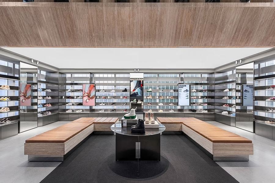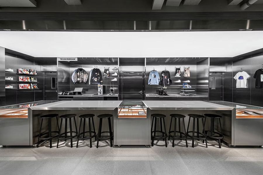 走进店内,首先映入眼帘的是融入了汉字“京砖”的地板,这一设计巧妙地融合了北京的地域特色,展现出乔丹品牌对中国文化的尊重和传承。在这里,顾客不仅可以购买到乔丹品牌的最新鞋款和服装系列,还能亲自体验“The Workshop”提供的客制化产品创新服务。无论是烫印压花、鞋带末端雕刻,还是服装修补,每一项服务都旨在满足顾客对于个性化的追求。