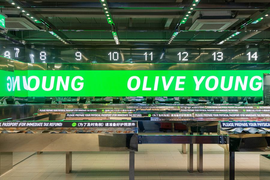 在空间布局上,Oliveyoung充分考虑了人流管理和服务的重要性。他们设计了一套高效的布局方案,以应对每天成千上万的不同国籍的游客。这个布局方案旨在让顾客在购物过程中感受到舒适和便捷,同时也能够快速地找到所需的产品和服务。为了实现这一目标,Oliveyoung将等待围栏巧妙地融入设计中,让顾客在等待时也能感受到产品的魅力。