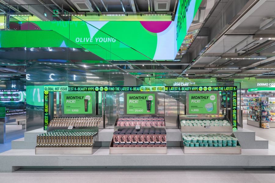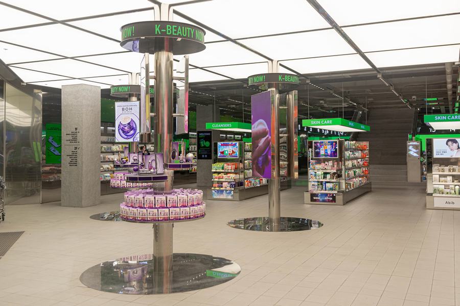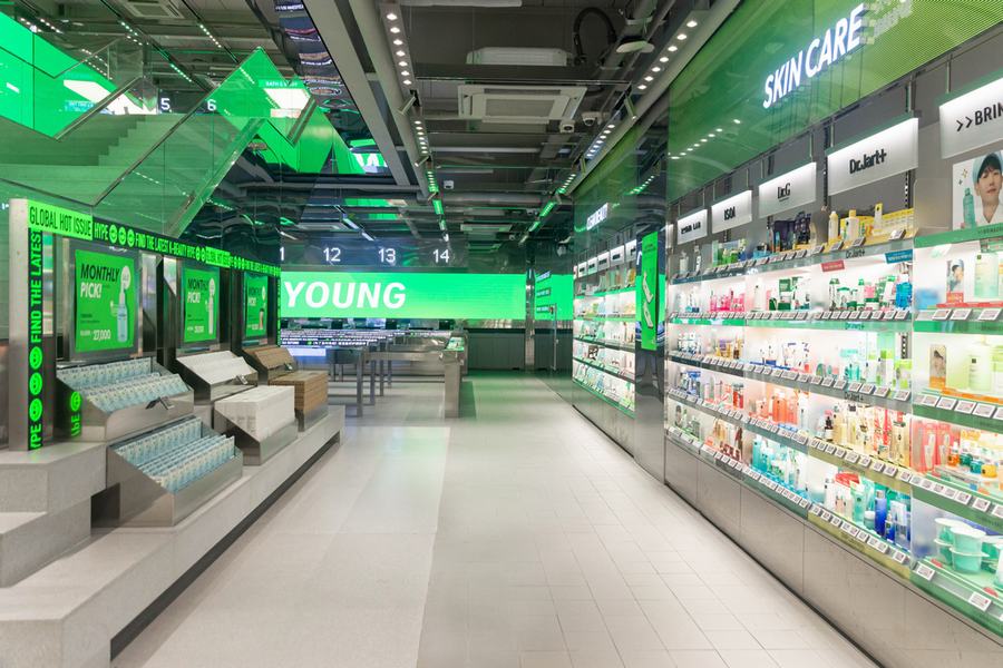 在新的设计理念中,Oliveyoung注重了顾客的多元化国籍和明洞商业区的变化。他们意识到,随着全球化的推进,不同国家的顾客对于购物体验有着各自独特的需求和期望。因此,他们决定打破传统的店面设计模式,采用更加灵活和包容的设计理念。