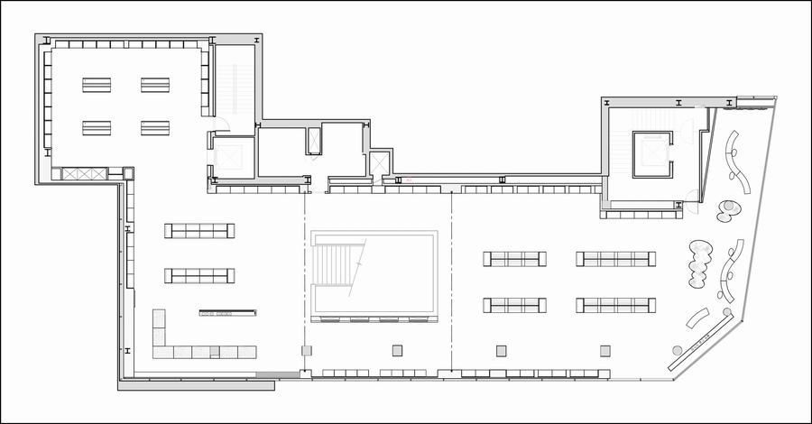 进入主入口后,迎接顾客的是主要的促销空间。这个区域的设计巧妙地融合了内部和外部的交通流线,使得清关和产品体验可以同时进行。为了保持整体设计的基调和风格,这个区域采用了通风和灵活的设计手法。同时,由于Oliveyoung品牌的周期性旋转特点,这个区域也成为了展示品牌特色和产品亮点的重要场所。