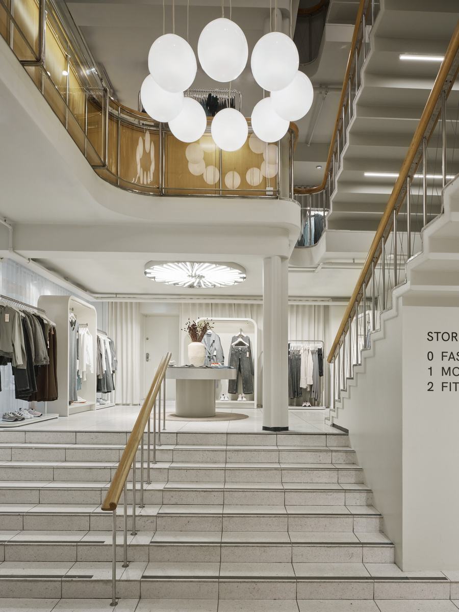 延伸阅读:轻奢品牌JEANSLAB服装店设计,中性色融合男女装。