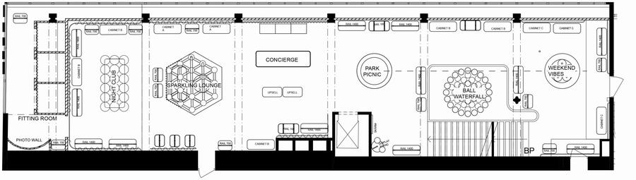 整个店铺的灯光设计也是独具匠心。从阿斯普朗德的老布里登伯格百货公司那里获得的灵感,让店铺的灯光设计充满了创意和想象力。圆形的白色球体作为主要的建筑单元,不仅将现在与过去联系起来,还为整个店铺的灯光设计增添了独特的韵味。亮度的设定和固定装置作为风景元素,如瀑布、上升的香槟气泡和一个程式化的树,都为整个店铺营造出了一个充满活力和创意的氛围。