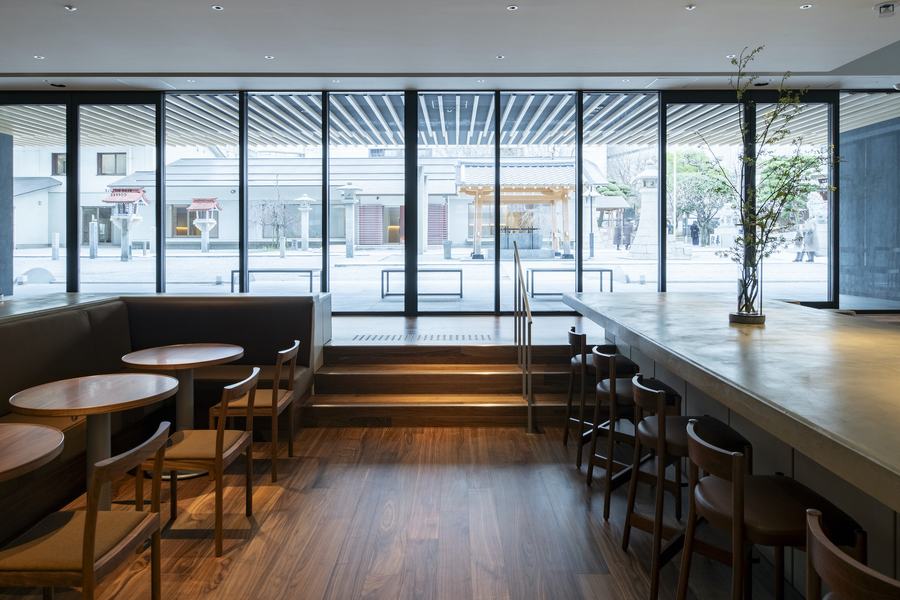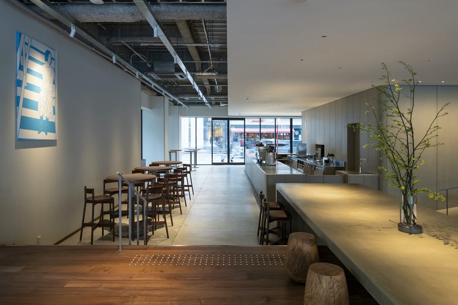 福冈天人咖啡馆坐落在这样一个特殊的位置,它既是熙熙攘攘的城市生活的缩影,又是宁静的精神寄托之所。Case-Real巧妙地将这种对比融入到设计中,通过空间的转变,呈现出从街道到神社的视觉和感官过渡。走进咖啡馆,你会首先感受到一股都市的活力。由水泥板和站立桌组成的区域,充满了现代感,与城市的环境和谐统一。这里的每一处设计都充满了巧思,无论是简约的线条还是实用的布局,都体现了设计师对细节的极致追求。