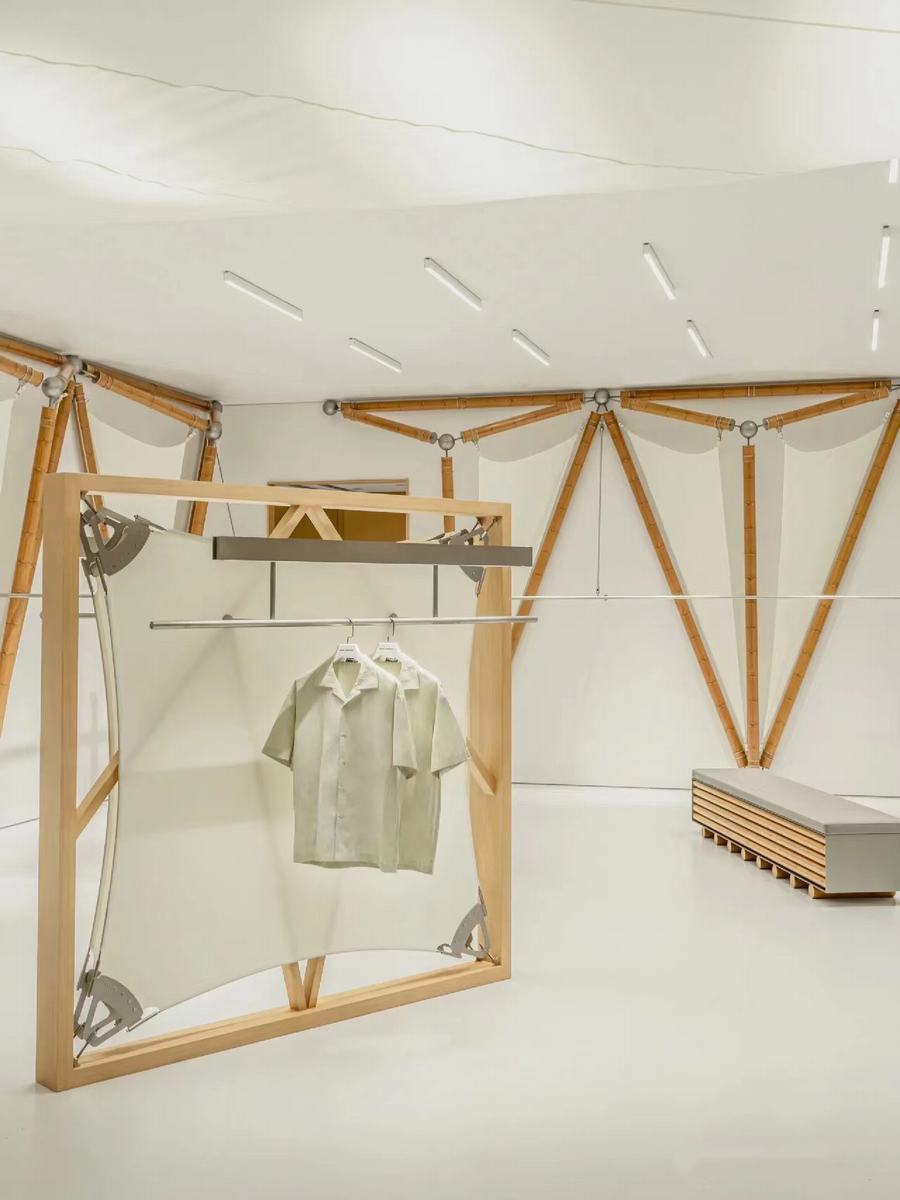 宁波江北万象城MC店巧妙地将宁波本土文化融入其中,竹子与白帆布两大元素的运用,无疑成为了店铺设计的点睛之笔。这种融合不仅展现了宁波独特的地方特色,更生动地诠释了“海定则波宁”的城市精神。