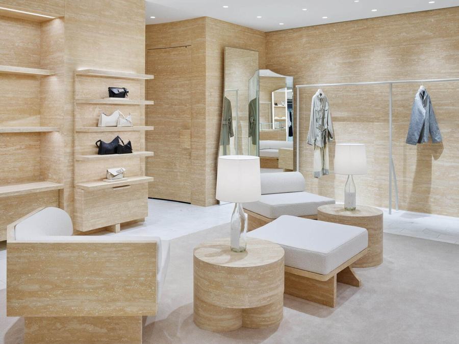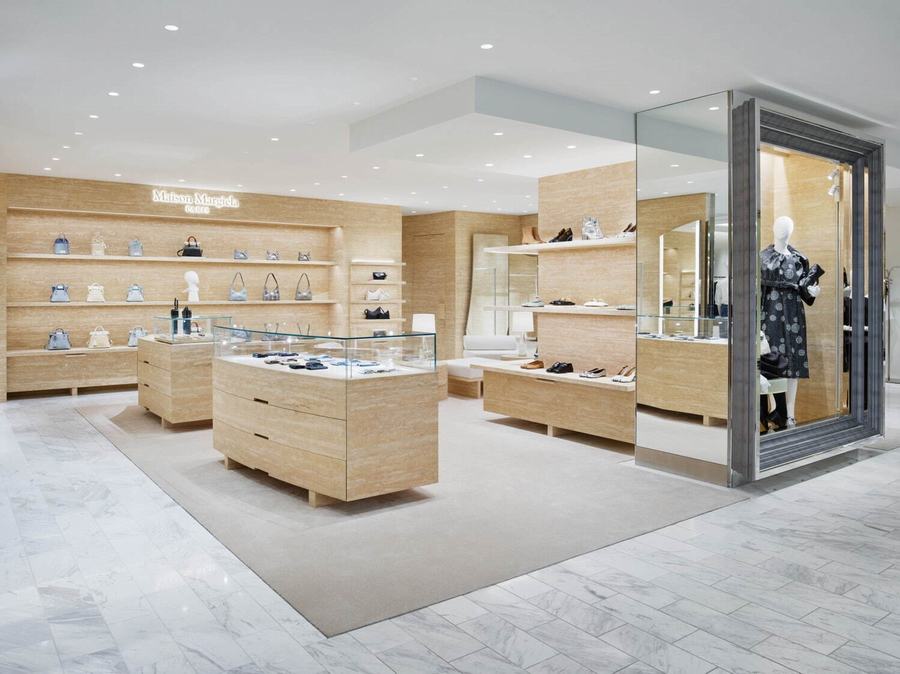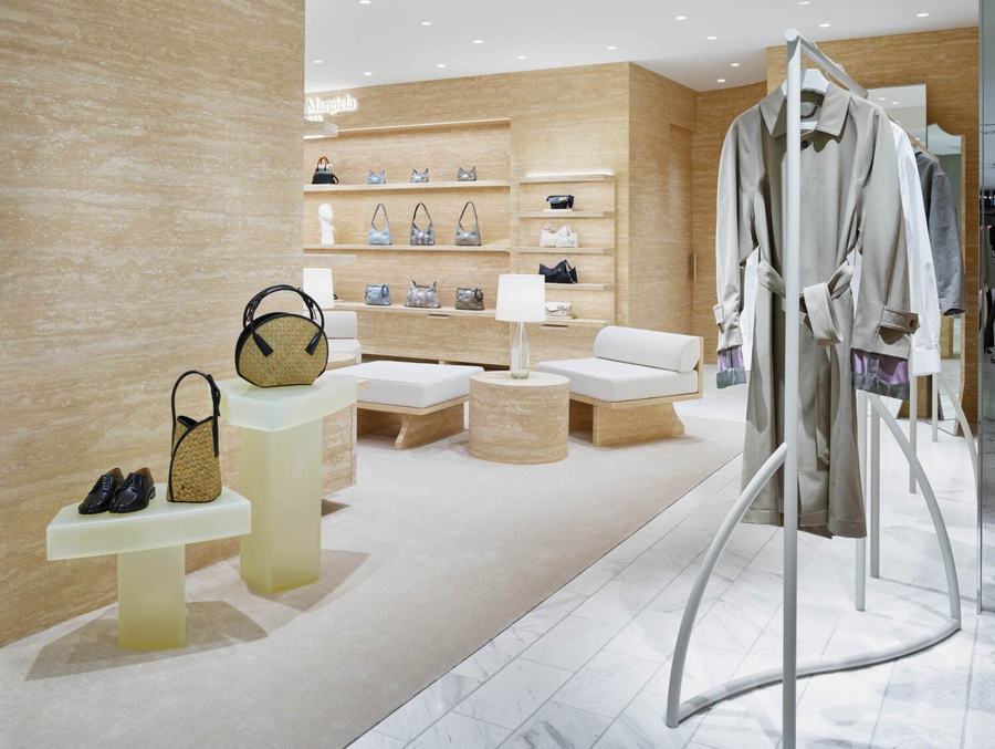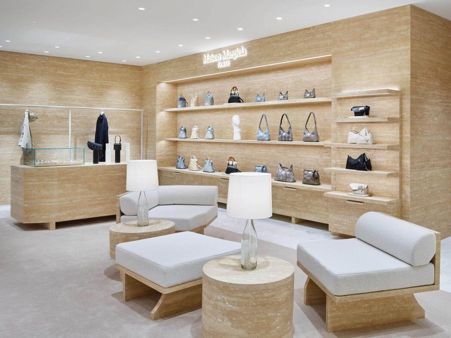 在店内,你可以看到一种名为“decortique”的展示技巧,它以一种不完全的形式重新构建了Maison Margiela的精髓。这种技巧不仅仅体现在商品的陈列上,更延伸到了店铺的每一个角落。比如那些用纯白环氧树脂填充自然形成的细孔的墙壁、架子和家具,它们都在无声地诉说着品牌的故事。