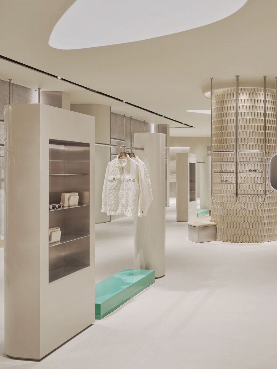 这家旗舰店占据着460平方米的空间,位于曼谷的中心地带。从外观到内部设计,都散发着现代感与艺术气息。旗舰店的设计灵感源自于中性材料和太空时代文化,同时也受到了意大利设计的深远影响。