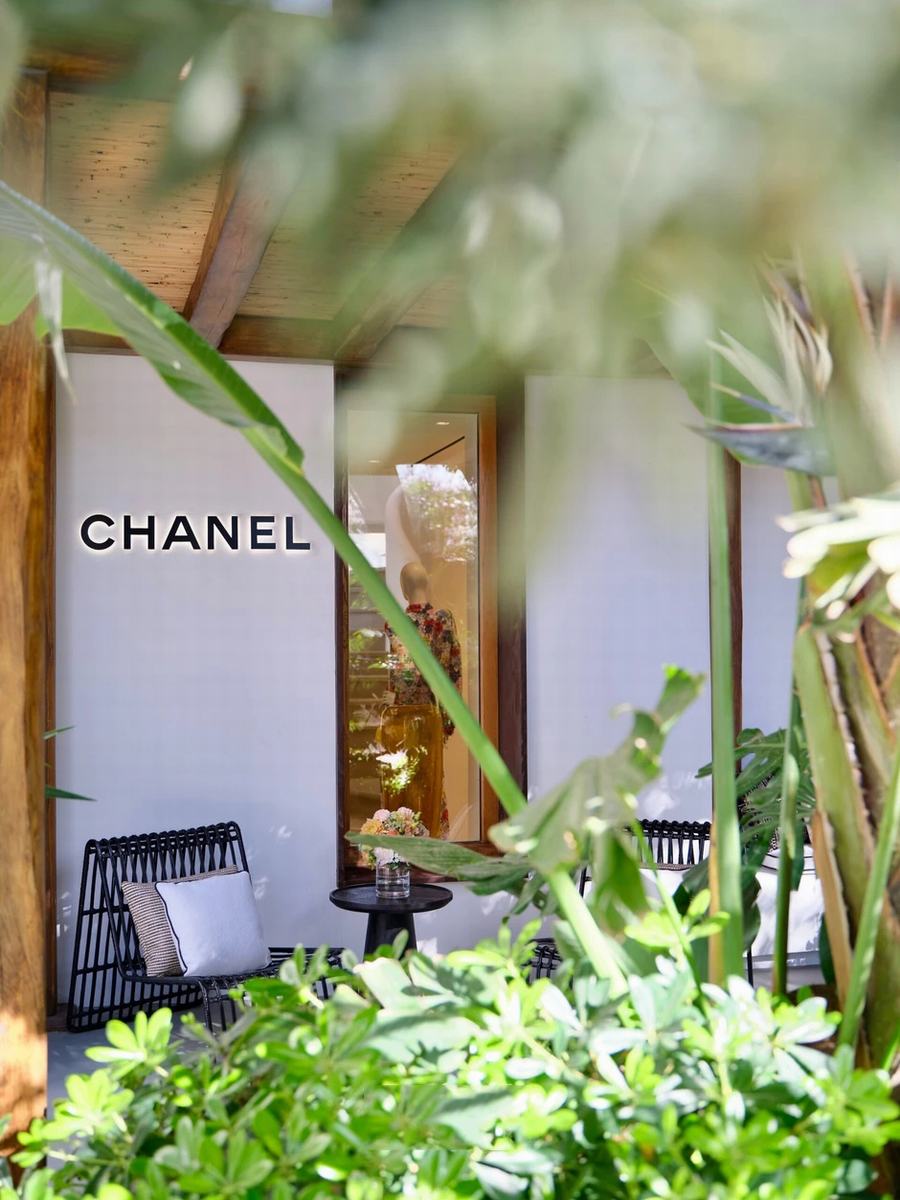 在精品店内部,琥珀色磨砂玻璃柜和全长镜子被巧妙地布置,最大限度地利用自然光线,为商品展示增添了一份优雅与艺术。而宽敞的露台则为顾客提供了一个放松身心的空间,让他们尽情享受悠闲的假期氛围,欣赏着迷人的岛屿风景。