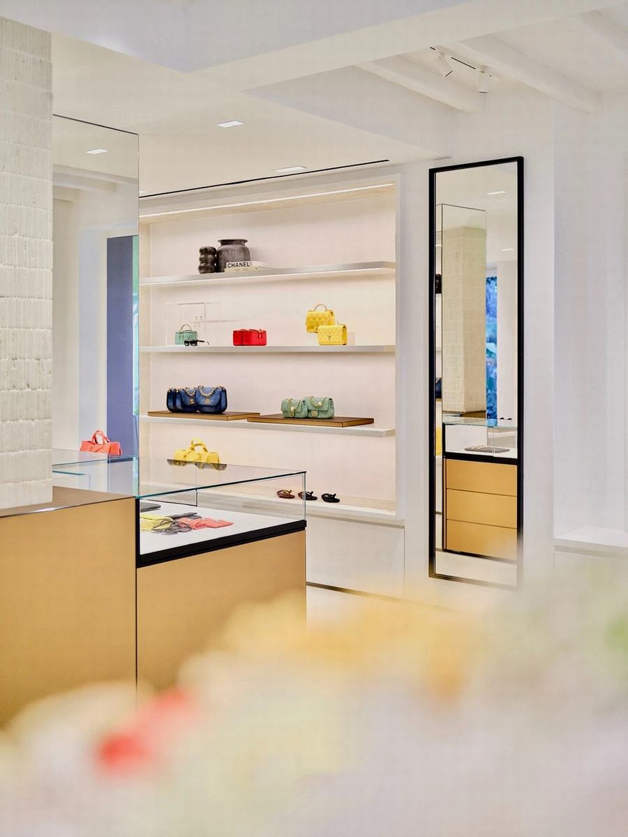 一层展示着香奈儿的新一季手袋、鞋子、太阳镜、配饰和品牌香水系列,吸引着追求时尚的购物者们。而雕塑般的楼梯通向上层,那里则是专门的手表和高级珠宝区,以及宽敞的成衣区,为顾客提供了更多选择和更加私密的购物体验。