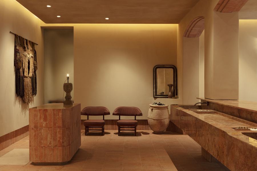 伊索Aesop Signature Store的每一个方面都经过精心策划,从布局到水盆的设计,旨在提升客户体验,并汲取灵感于伊索培养有意义的参与的理念。店铺采用当地采购的材料,包括手工制作的陶瓦和红色的西班牙石灰华,反映了马德里的精髓。值得一提的是,天然石墨烯墙应用这样的创新元素不仅展示了商店对可持续性的承诺,还确保了自然的温度控制、持久的耐用性和最低的维护要求。