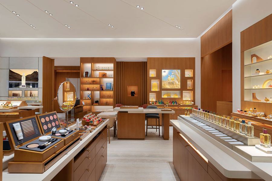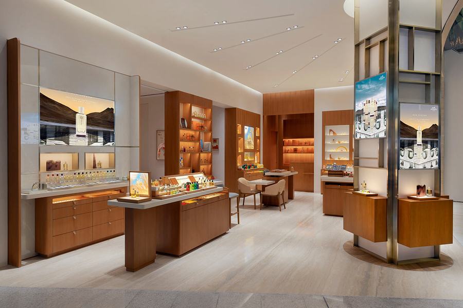 多哈节日城是一个聚集了众多国际品牌的购物天堂,而其中最引人注目的莫过于爱马仕香水美容店。作为Hermès在卡塔尔的第三家门店,这个精致而豪华的空间将香水与美容用品呈现在最完美的状态下,让顾客能够尽情享受奢华与美感。
