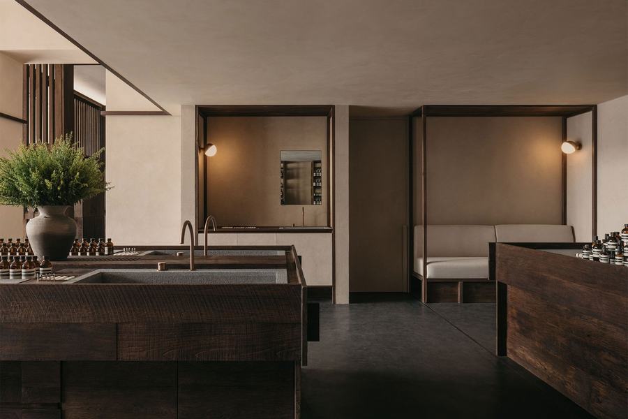 进入伊索在泰国的第一家独立商店,仿佛踏入了一个充满自然韵味与人文气息的世界。店内的每一处细节都透露出设计师的匠心独运和对泰国文化的深刻理解。木材的质感与凉爽的阴影交织在一起,营造出一种既现代又传统的氛围。
