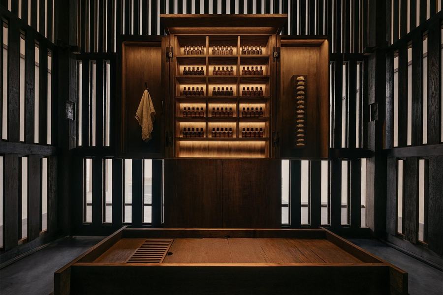 在伊索商店中,当代的国内品质和美学得到了完美的体现。Fa-Lhai Room是一个僻静的木制亭子,灵感来自泰国北部的住宅类型。这个空间的设计既体现了对传统文化的尊重,又展现了现代设计的简约与精致。在这里,顾客可以感受到泰国北部乡村的宁静与祥和,仿佛置身于一个远离喧嚣的世外桃源。商店的中央四部分水槽则是另一个对家庭生活的致敬。每个花岗岩水池的灵感都来自kraba-din,这是当地村庄公共聚会的传统土制火坑。这种设计不仅让顾客在购物的同时能够感受到泰国乡村的温馨与亲切,还让店铺成为了一个社区交流的平台。