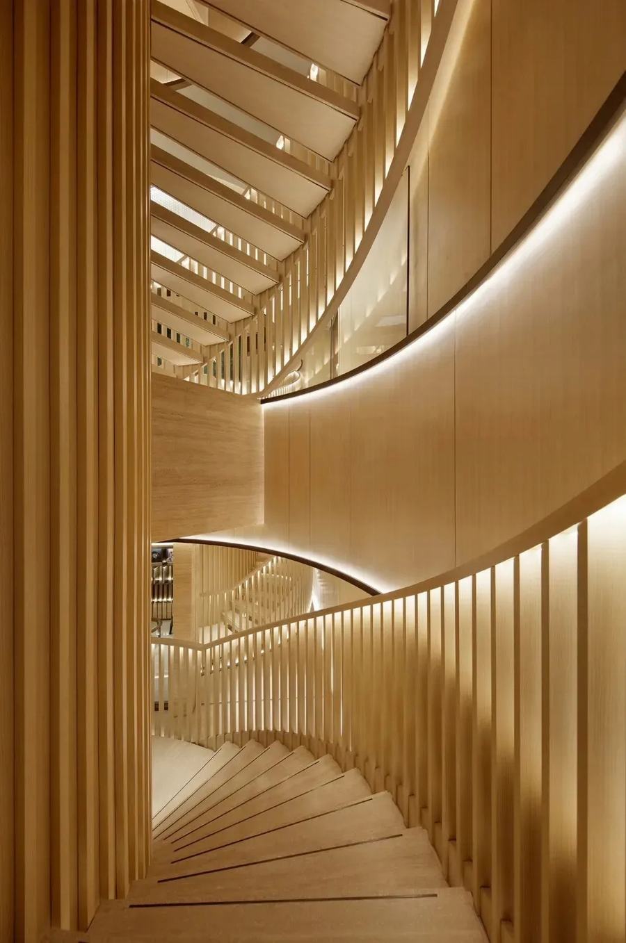 而在立面的玻璃中,京都生产的金属网巧妙地嵌入其中,使得整个立面以独特的双边框图案闪闪发光。这种设计不仅增添了空间的层次感,更使得图案的变化取决于观看者的角度,为每一位来访者带来了独特的视觉体验。