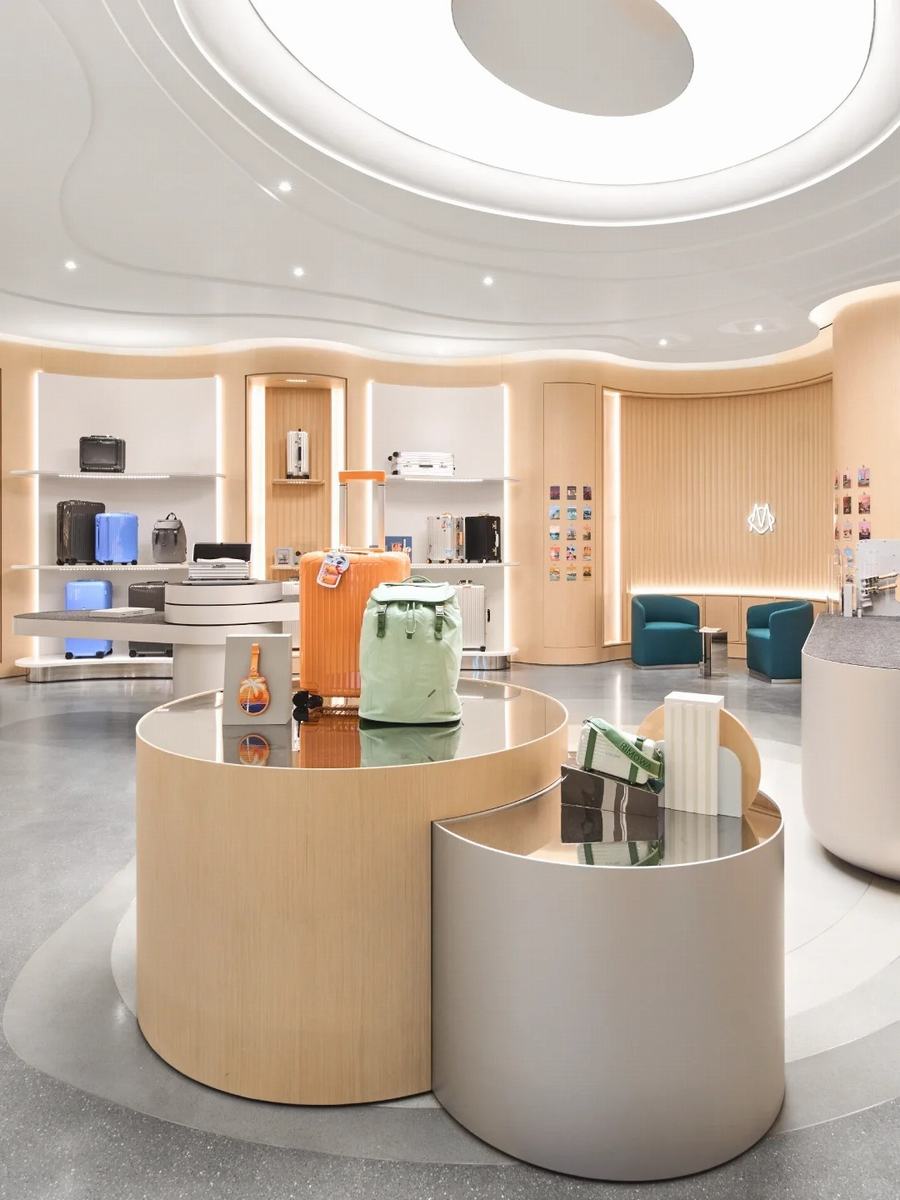 走进店内,流线型的室内设计更是让人眼前一亮。店铺内部的空间布局,巧妙地将各个区域划分得既清晰又富有层次感。螺旋桨造型的桌子,灵感源于飞机窗户的照明灯设计,不仅为店铺增添了独特的艺术气息,更让顾客在购物的过程中感受到品牌对于细节的极致追求。