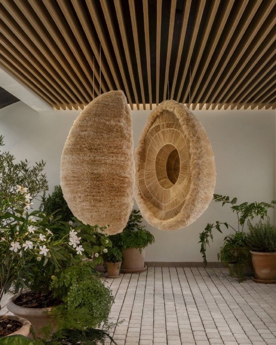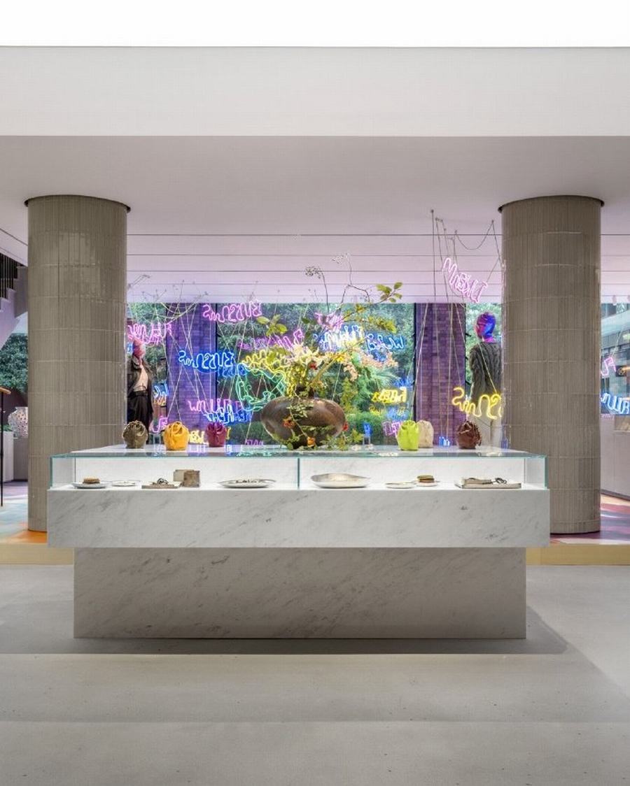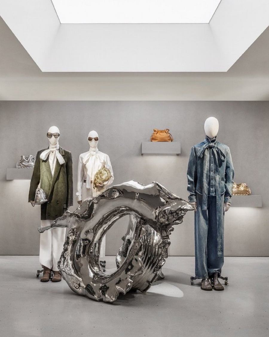 除了时尚产品,成都高宅更是一个艺术的天堂。宁静的户外空间中,陈列着来自世界各地的艺术品,它们与周围的环境完美融合,仿佛是大自然的一部分。中国艺术家的作品在这里得到了充分的展示,如黄婉冰的《混沌的熵减》和陆斌的《花瓶》,这些作品不仅体现了艺术家的个人风格,也彰显了LOEWE罗意威对时尚、设计和艺术的卓越追求。