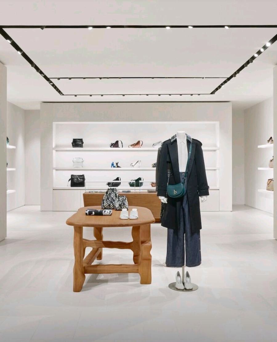 步入Burberry滨海湾金沙新店的那一刻,仿佛穿越至一个既熟悉又新奇的维度。首先映入眼帘的是由美国艺术家Casey McCafferty匠心独运的模糊有机形状木桌,它们如同自然界的抽象雕塑,以不规则的形态诉说着关于生长、变化与和谐共生的故事。这些木桌不仅承载着品牌对高品质材料的追求,更以其独特的艺术语言,引导着顾客进入一个充满想象与灵感的购物环境。