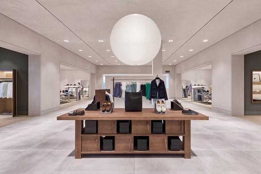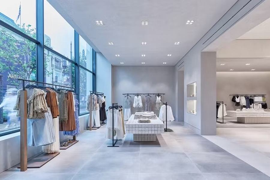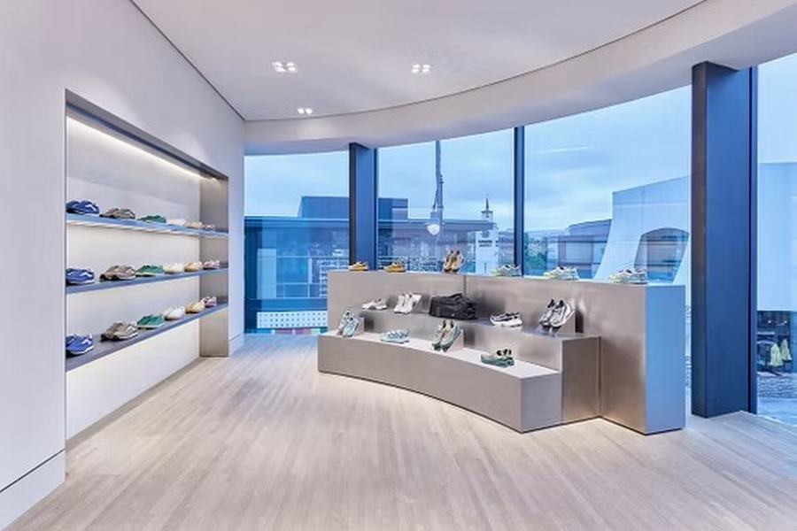 店内空间宽敞且充满光线,白色表面和自然光的引入使得产品展示更为突出。空间布局流畅且开放,创造了一种沉浸式购物体验,让顾客在每个区域都能感受到品牌的独特氛围。