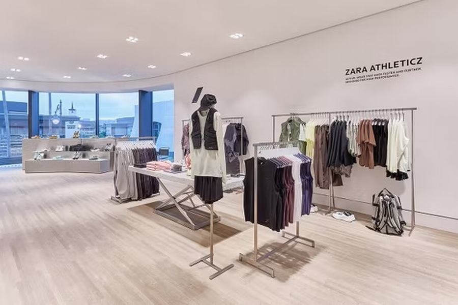 Zara在一楼设置了一个专门的精品区域,展示品牌的内衣系列,这一设计充分体现了品牌对高端购物环境的重视。此外,男装区也在一层得到精心布局,包含了Zara Athleticz最新的运动系列,男鞋和配饰则被巧妙地安置在专门的区域内,延续了品牌一贯的品类驱动设计。